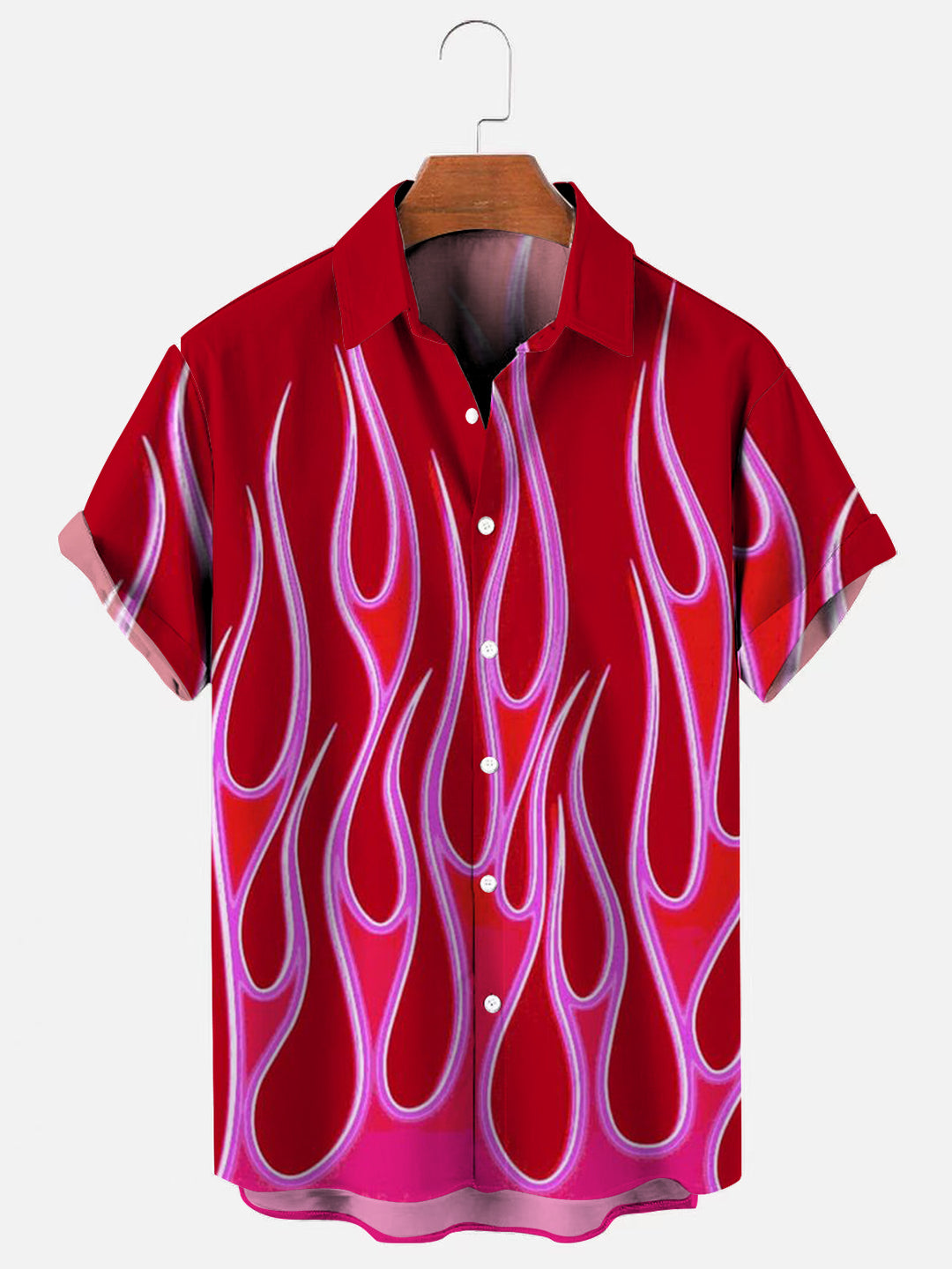 Men's Flame Print Fashion Hawaiian Short Sleeve Shirt