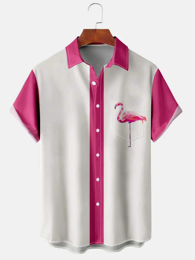 Men's Flamingo Print Casual Short Sleeve Hawaiian Shirt