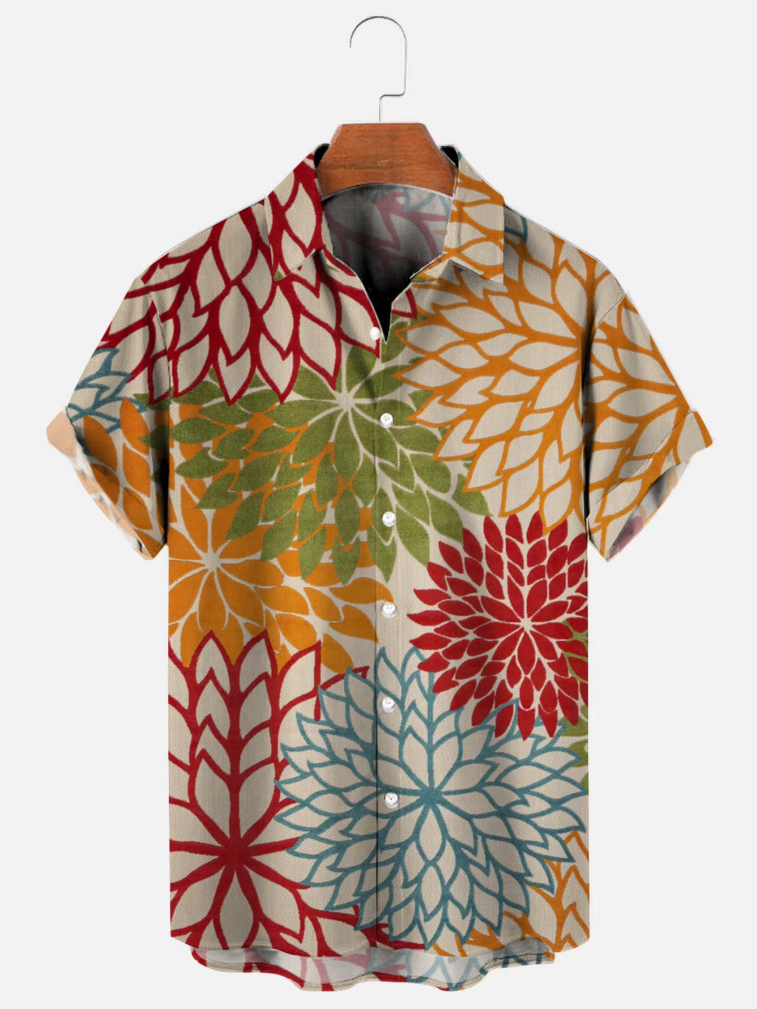 Men's Floral Print Hawaiian Casual Breathable Short Sleeve Shirt