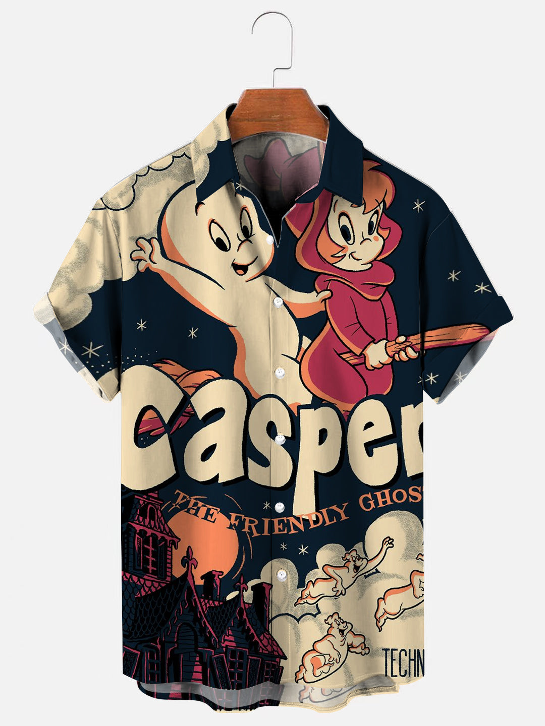 Men's Friendly Ghost Vintage Poster Print Hawaiian Short Sleeve Shirt
