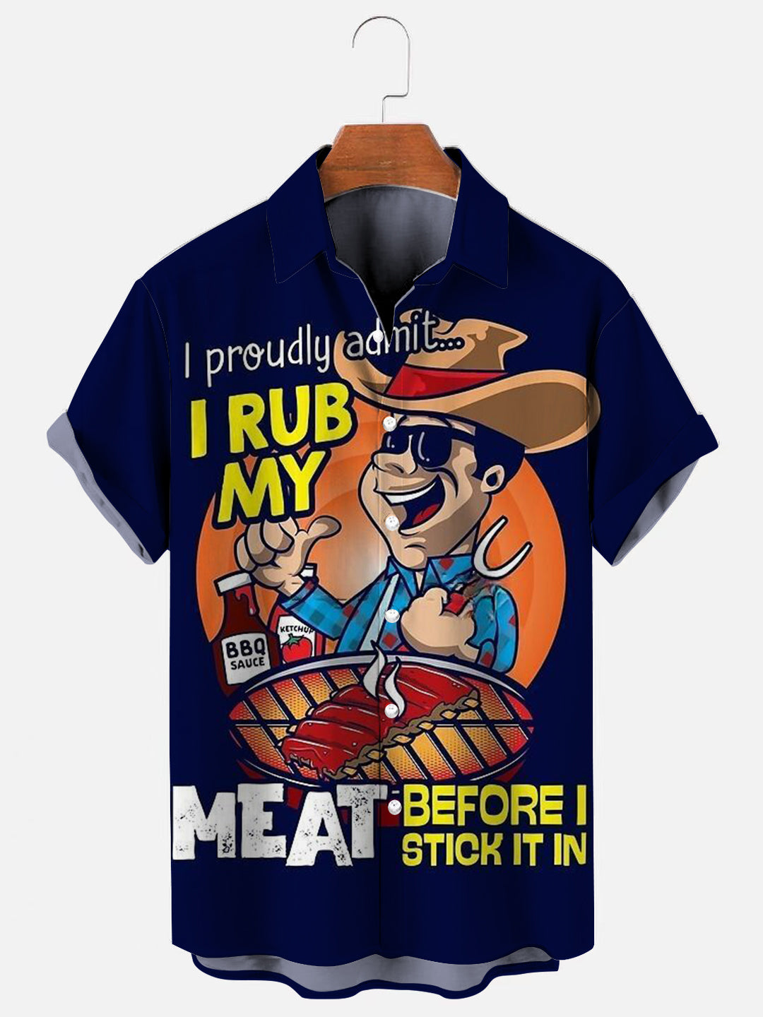 Men's Fun BBQ Print Hawaiian Casual Short Sleeve Shirt