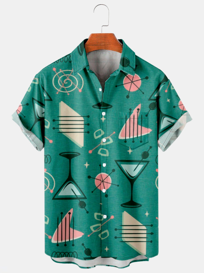 Men's Geometric Casual Short Sleeve Hawaiian Shirt with Chest Pocket
