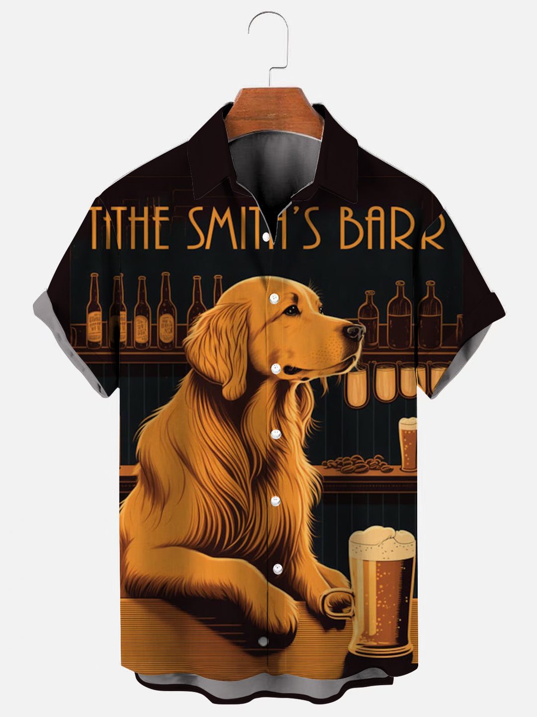 Men's Golden Retriever Beer Print Hawaiian Short Sleeve Shirt