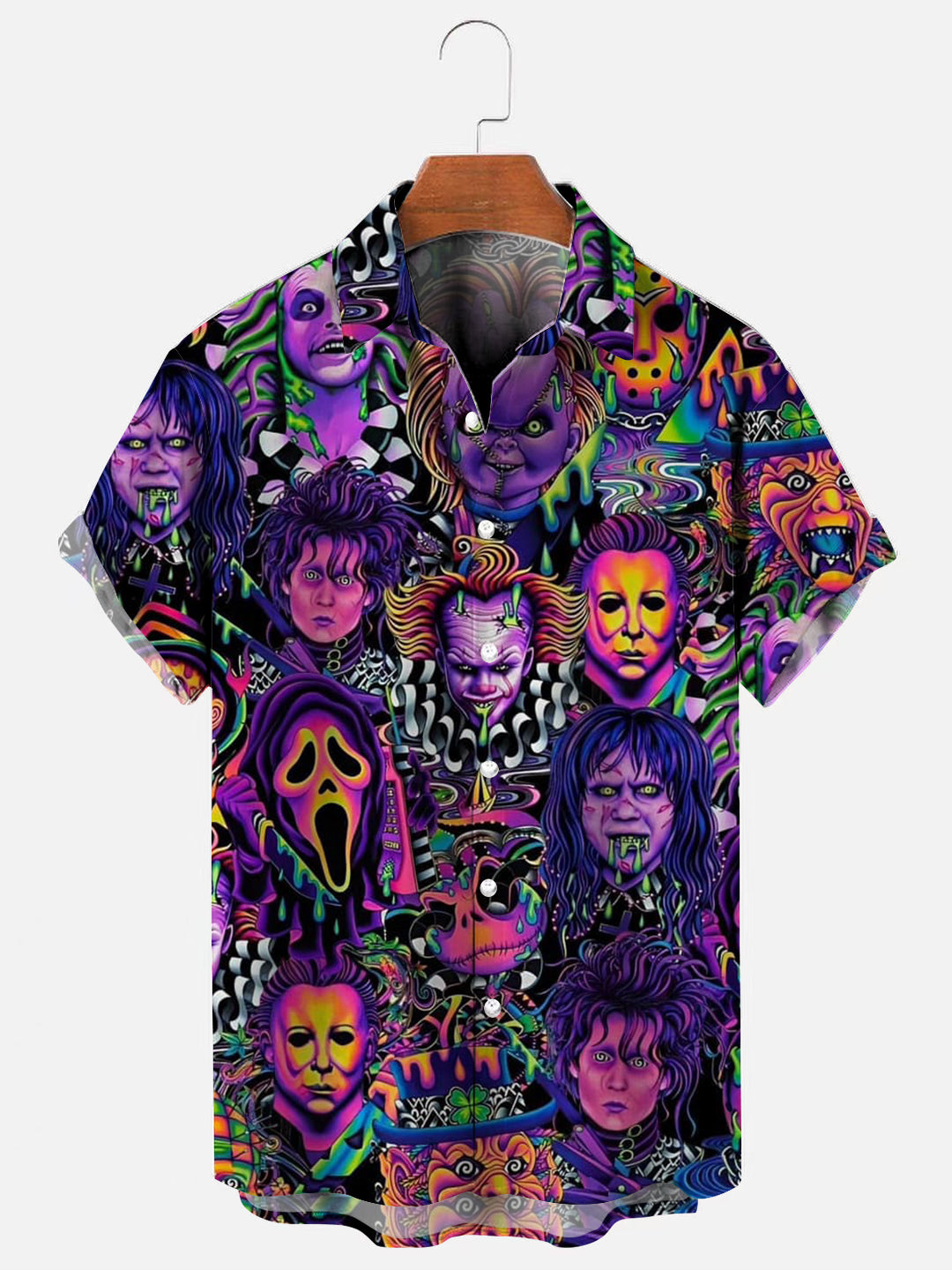 Men's Halloween Horror Movie Print Hawaiian Short Sleeve Shirt
