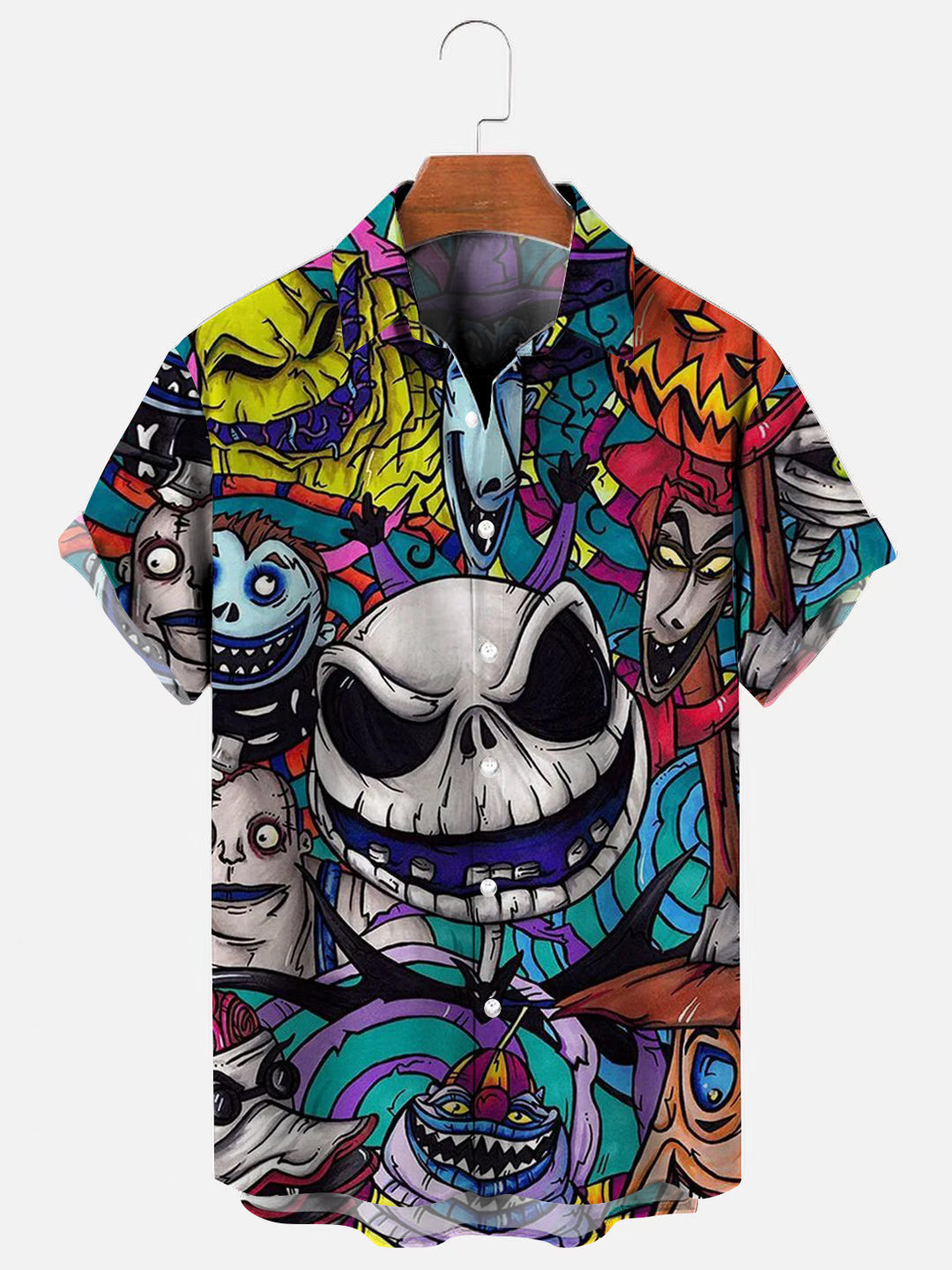 Men's Halloween Nightmare Before Christmas Printed Hawaiian Short Sleeve Shirt