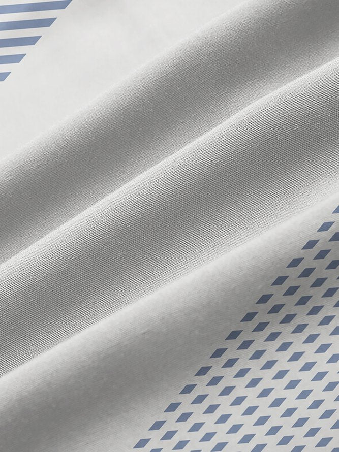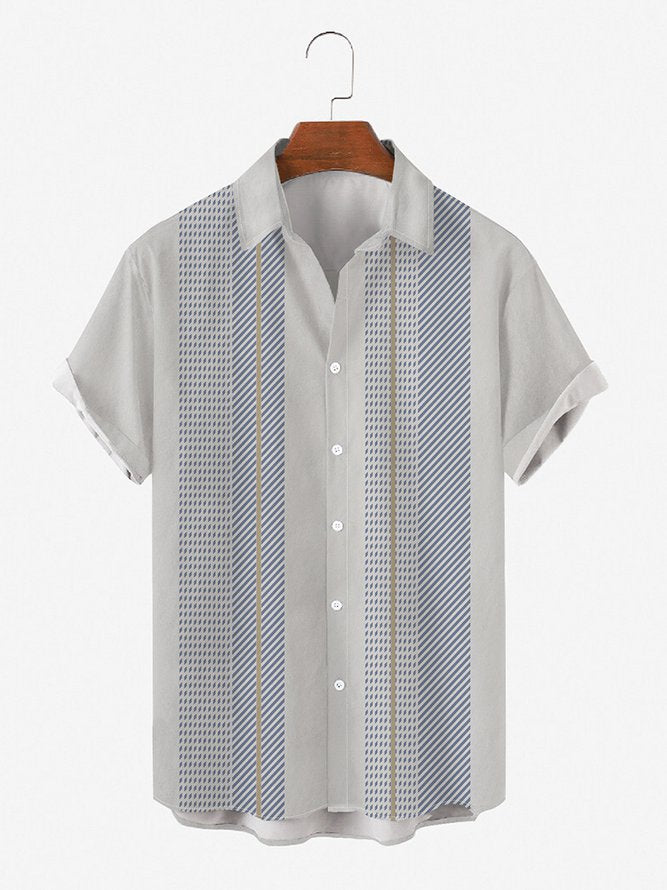 Mens Striped Print Round Hem Loose Short Sleeve Shirts