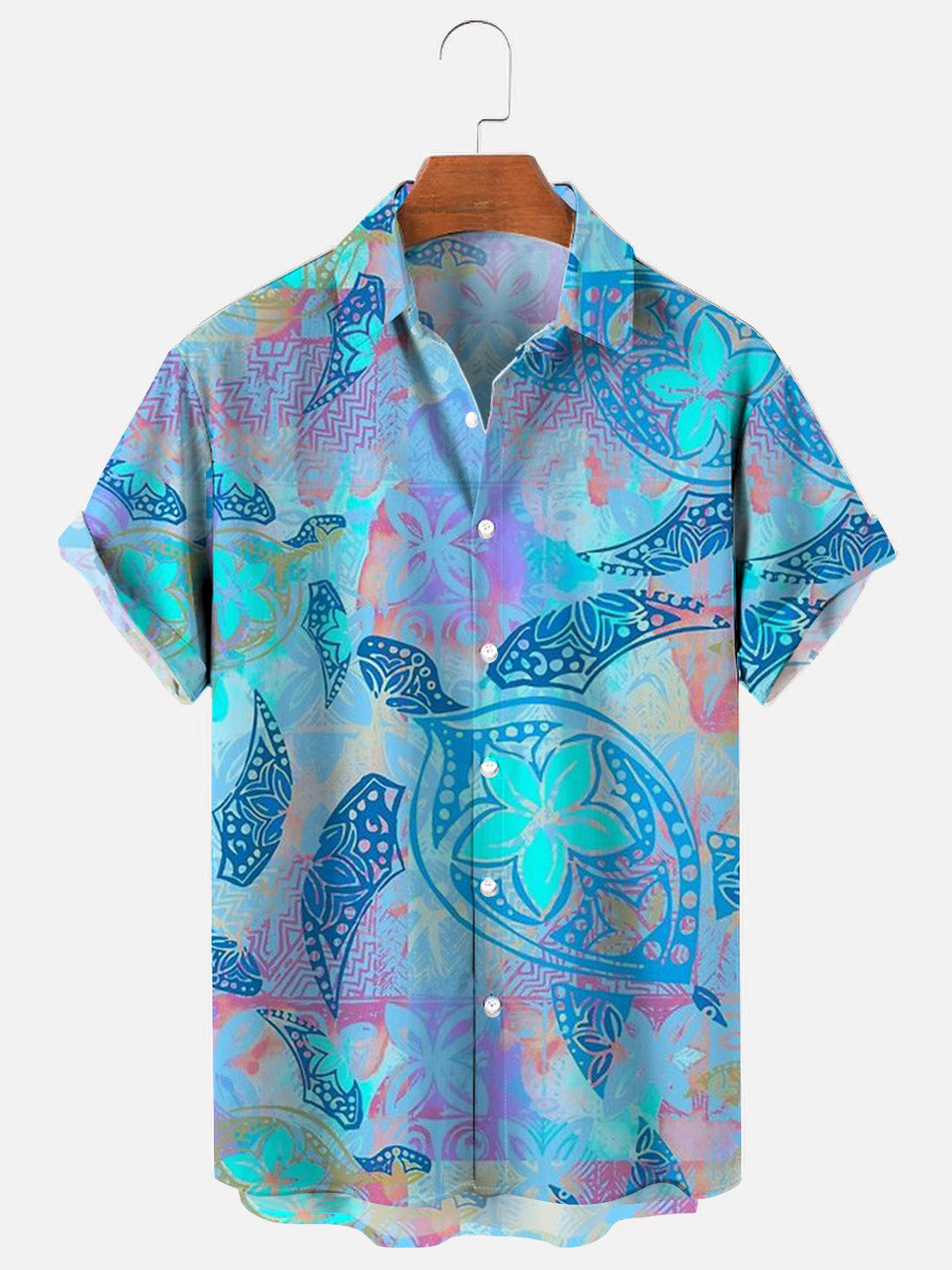Men's Hawaiian Turtle Print Casual Breathable Short Sleeve Shirt