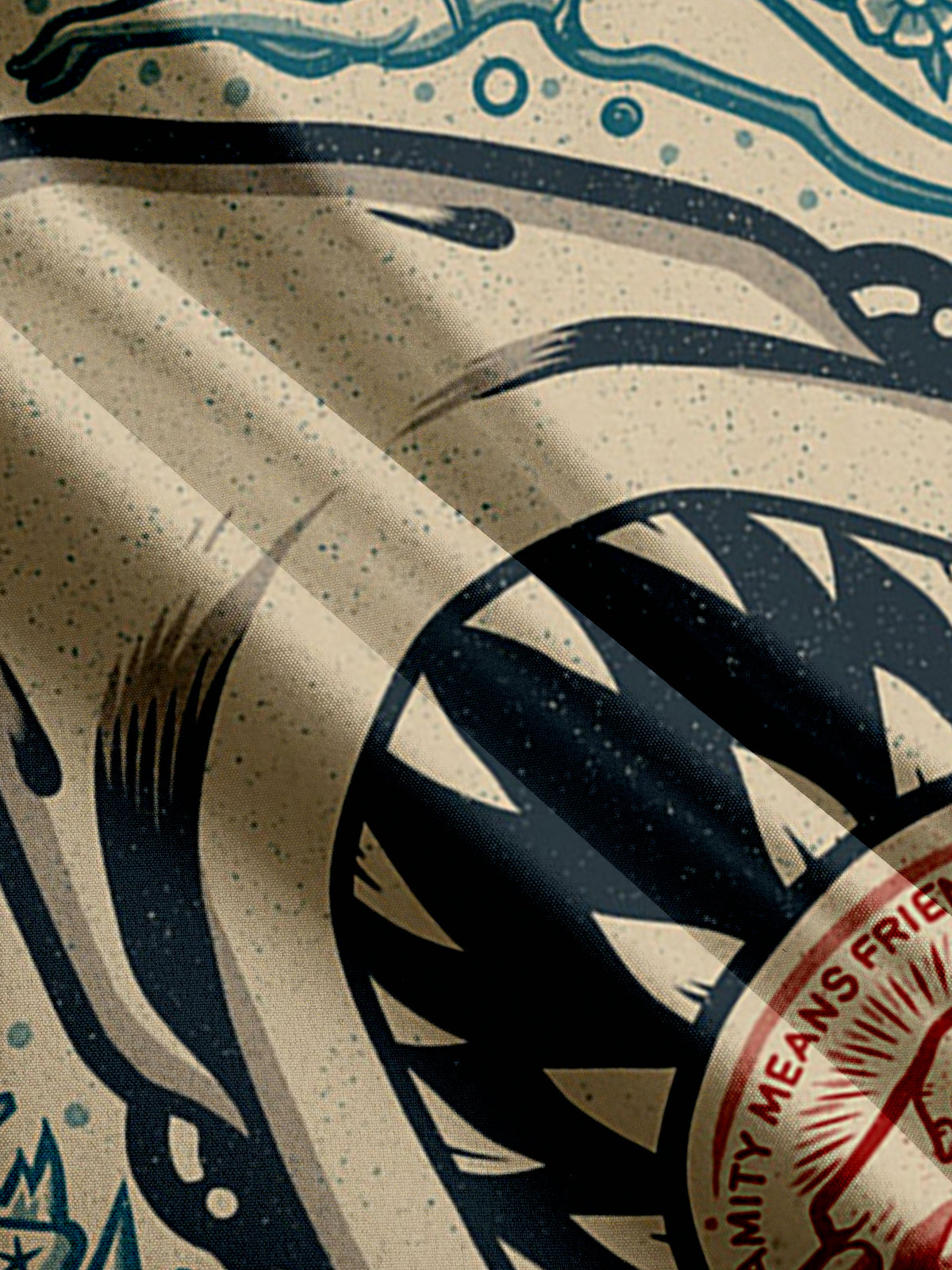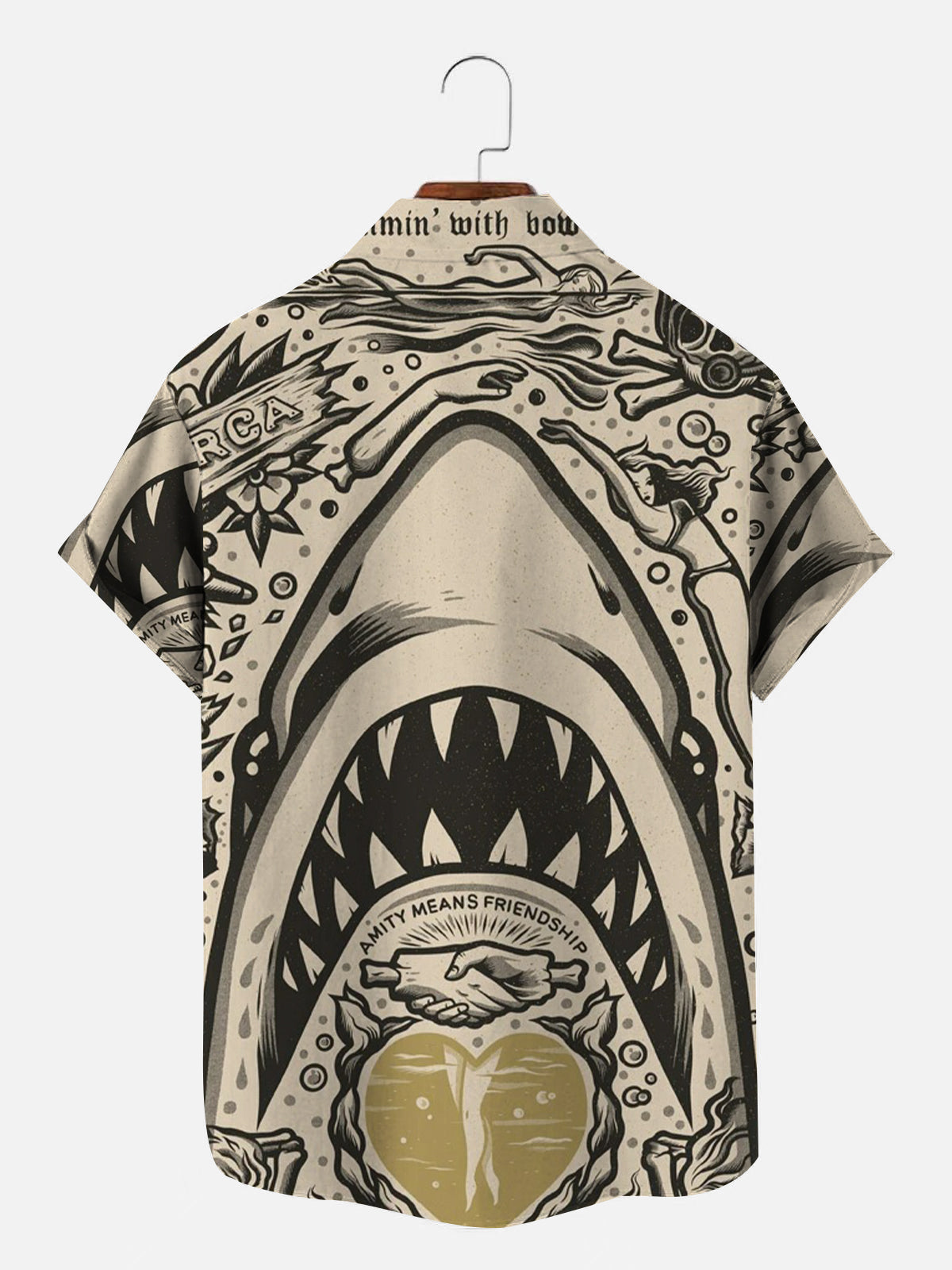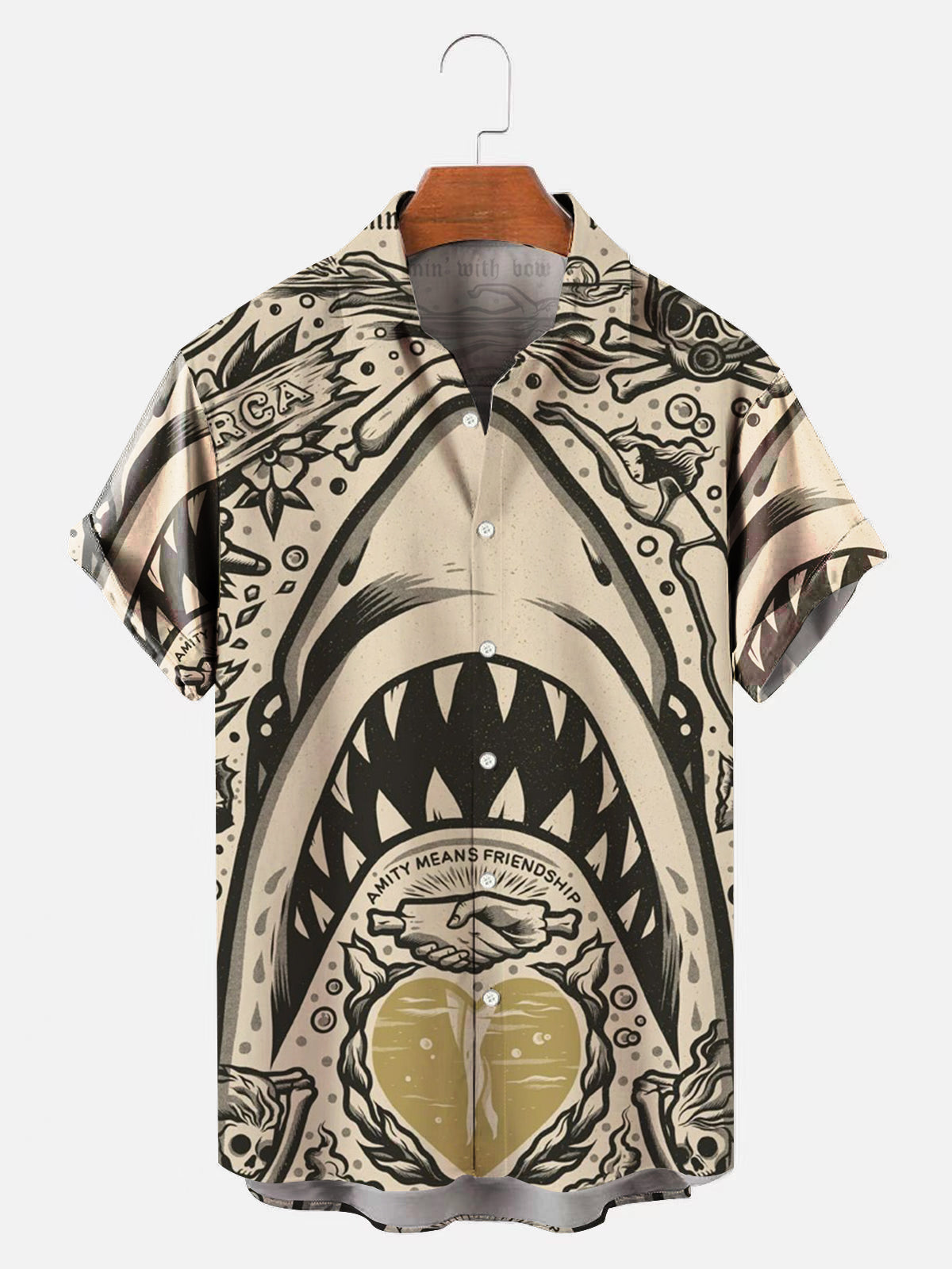 Men's Hawaiian Vintage Jaws Print Short Sleeve Shirt
