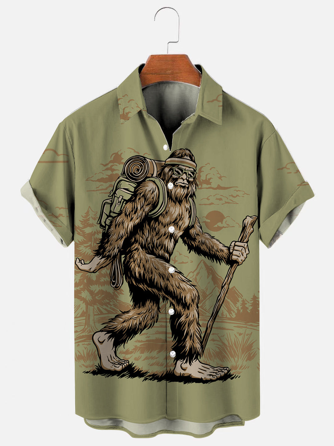Men's Hiking Bigfoot Outdoor Adventure Graphic Print Hawaiian Short Sleeve Shirt