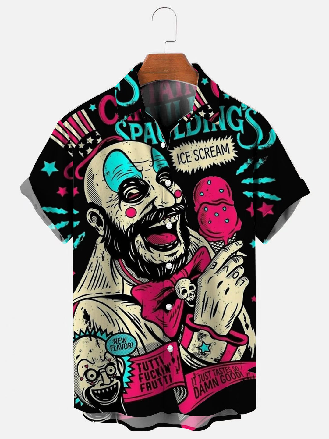 Men's Horror Movie Halloween Print Hawaiian Short Sleeve Shirt