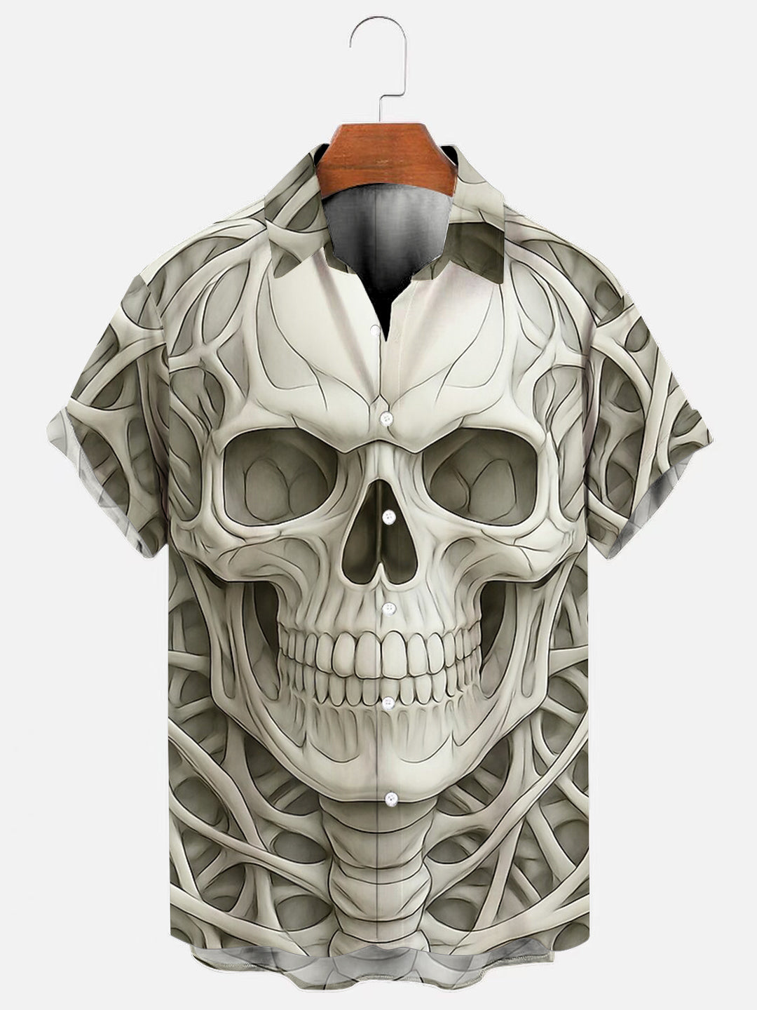 Men's Human Bone Mesh Print Short Sleeve Shirt