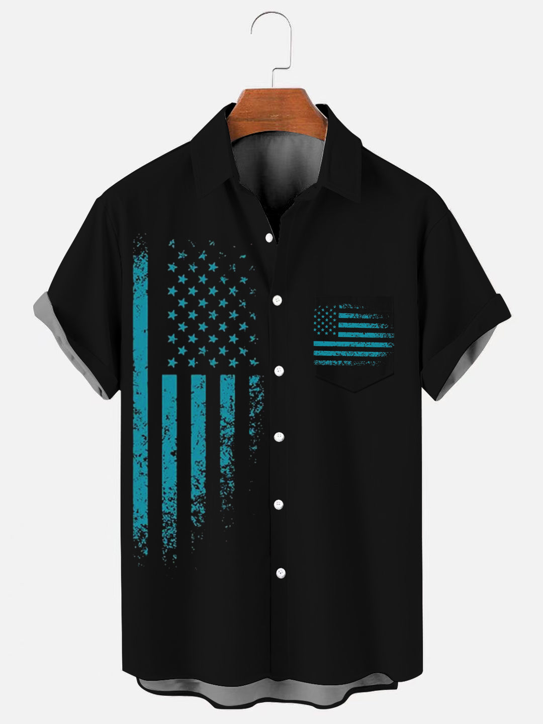 Men's Independence Day Flag Print Hawaiian Short Sleeve Shirt