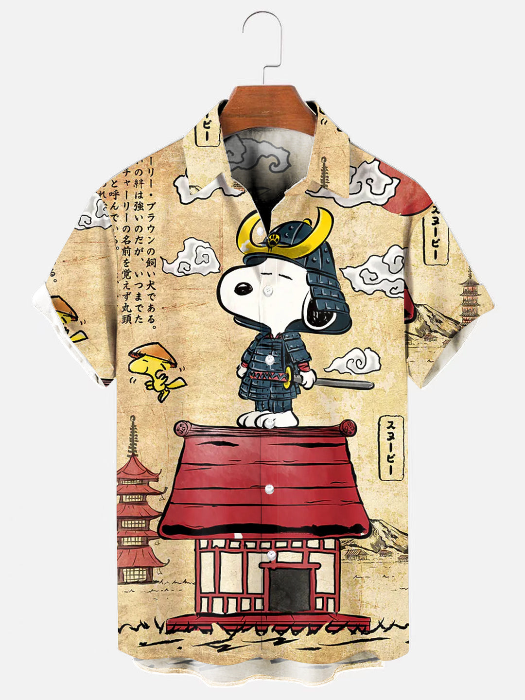 Men's Japanese Beagle Art Print Hawaiian Short Sleeve Shirt