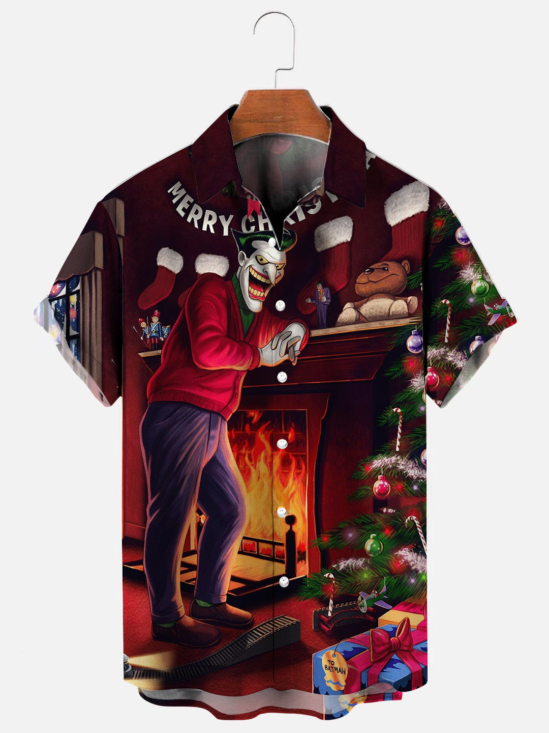 Men's Joker Christmas Print Hawaiian Short Sleeve Shirt