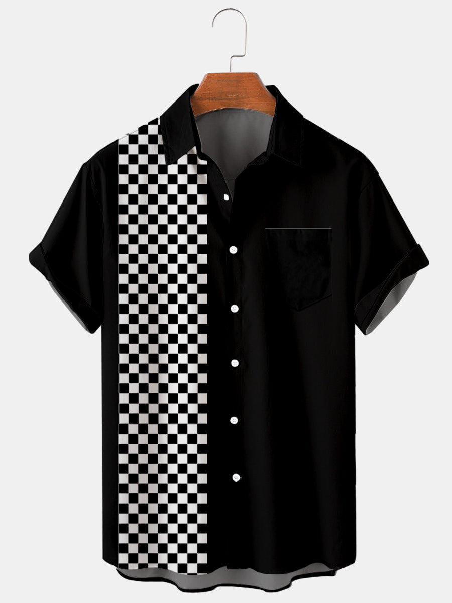 Men's Large Size Simple Casual Checkerboard Checkerboard Stitching Shirt With Pockets