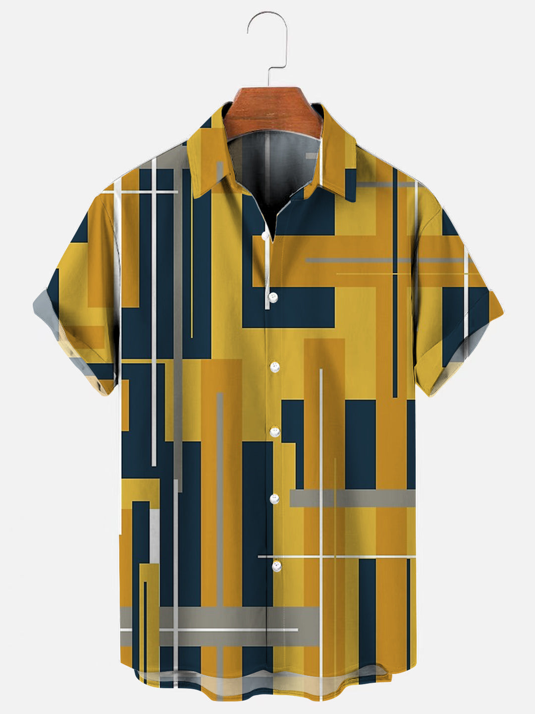 Men's Mid-Century Modern Plaid Vintage Geometric Abstract Pattern Print Hawaiian Short Sleeve Shirt