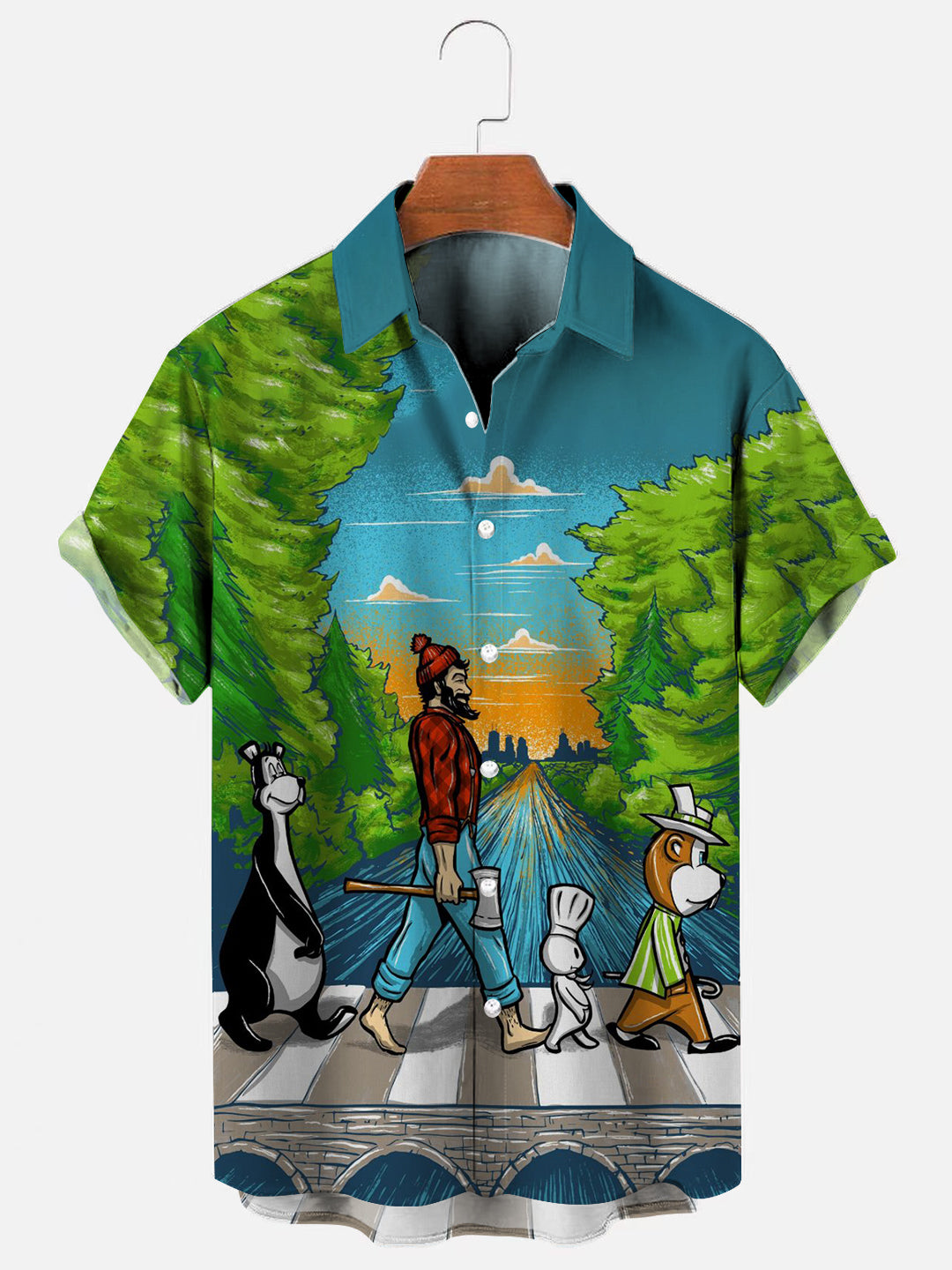 Men's Minnesota Character Print Hawaiian Short Sleeve Shirt