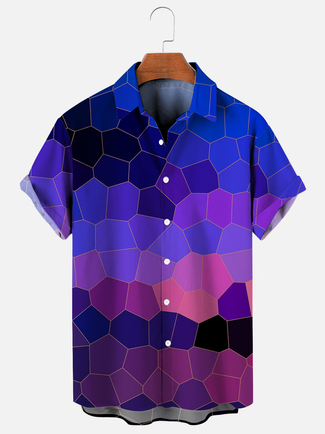 Men's Mosaic Textured Print Graphic Hawaiian Short Sleeve Shirt