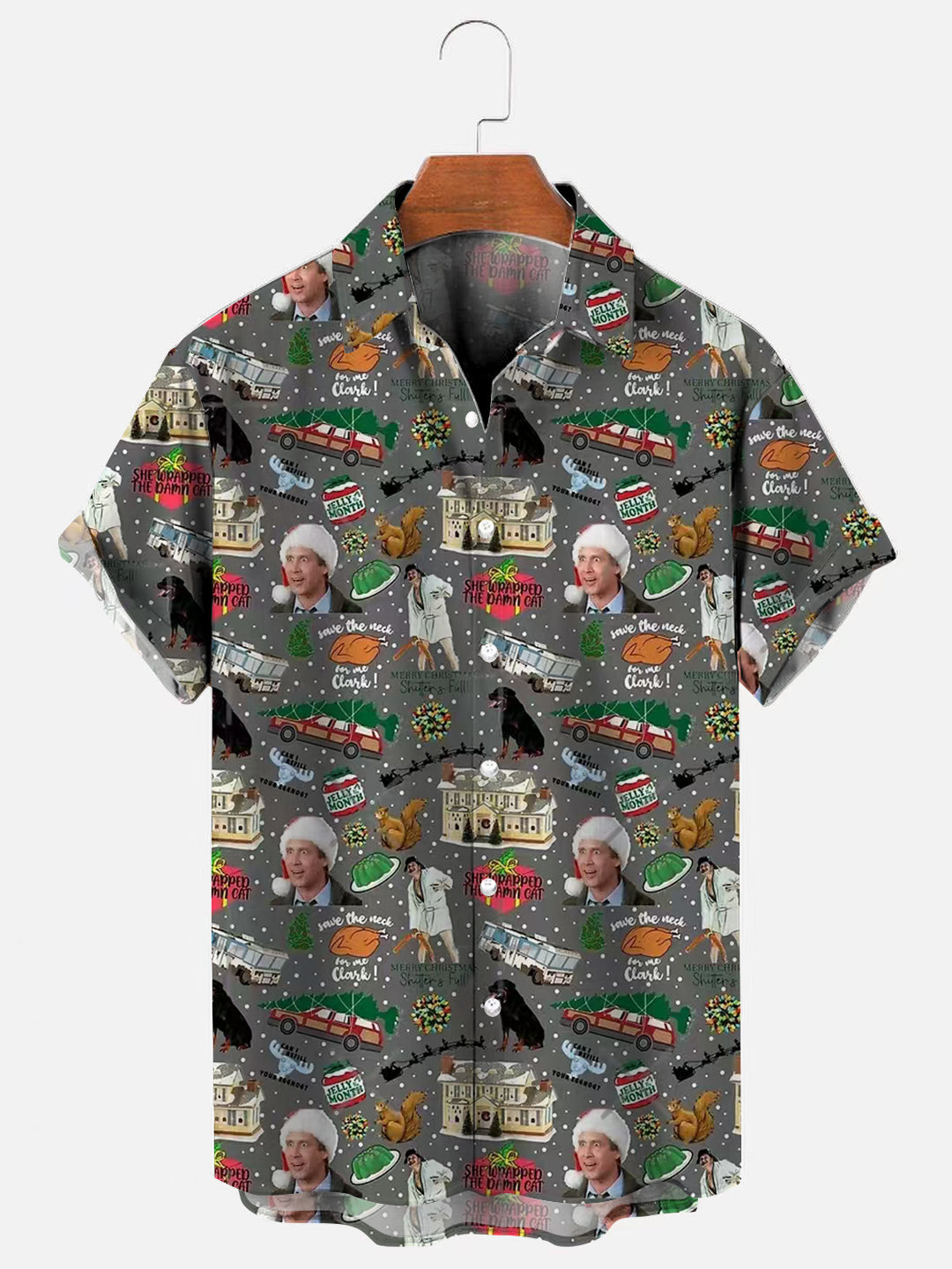 Men's National Lampoon Christmas Holiday Graphic Print Christmas Short Sleeve Shirt