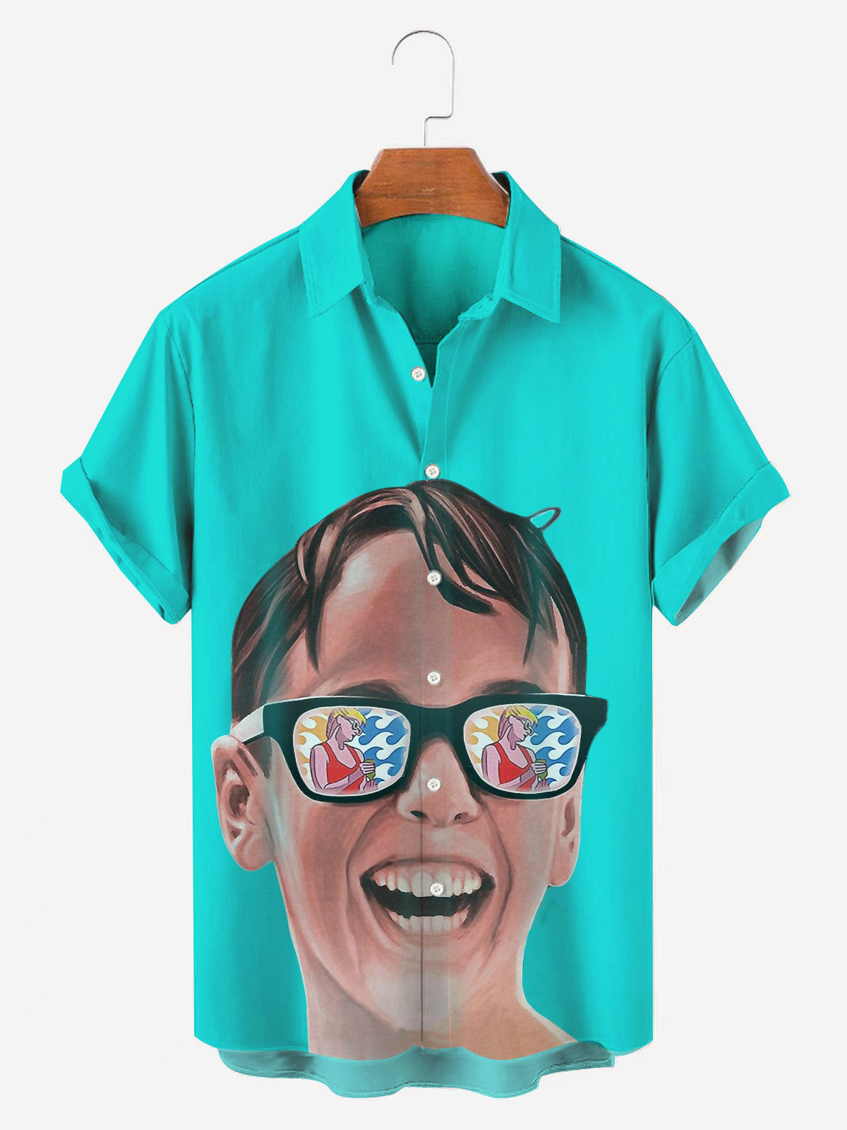 Men's Nostalgic Movie Fun Print Short Sleeve Shirt