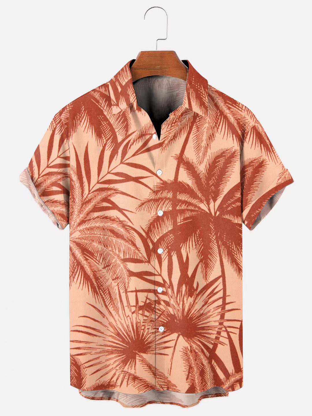 Men's Palm Leaf Print Hawaiian Short Sleeve Shirt