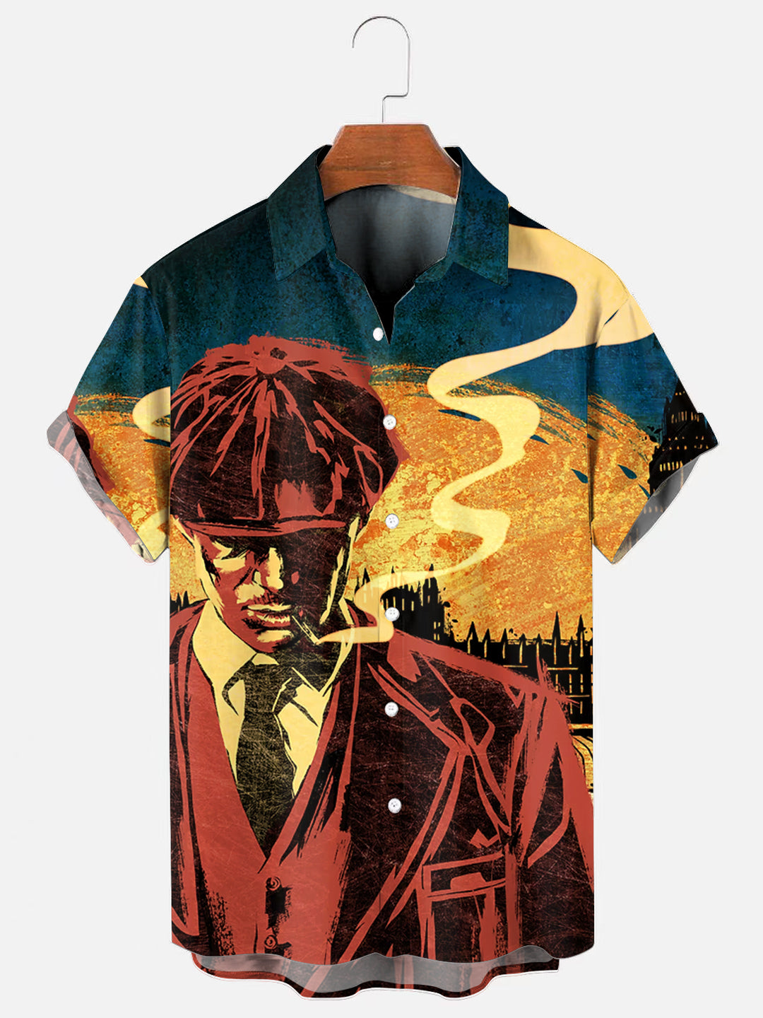 Men's Peaky Blinders Poster Print Hawaiian Short Sleeve Shirt