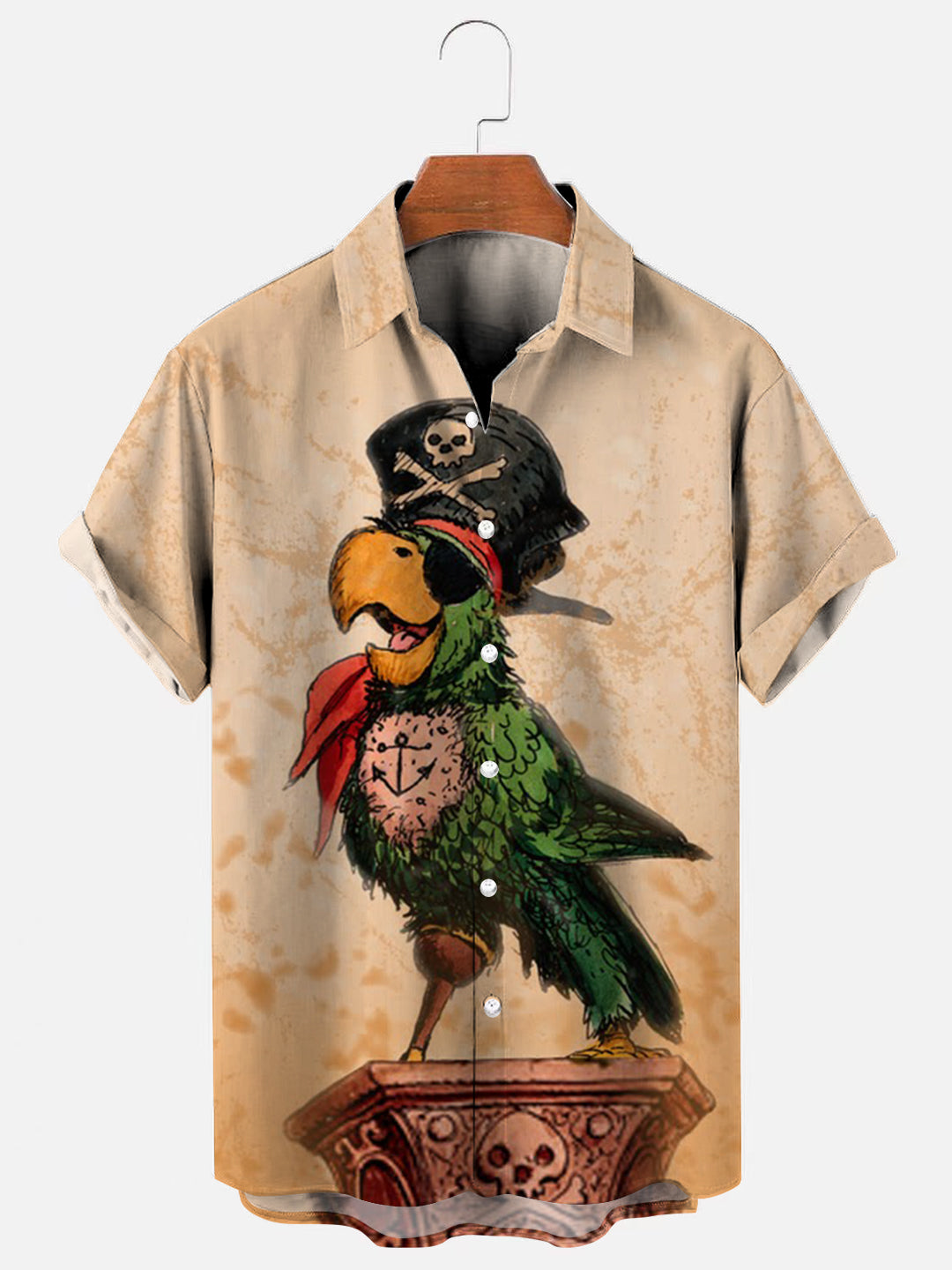 Men's Pirate Parrot Print Hawaiian Short Sleeve Shirt