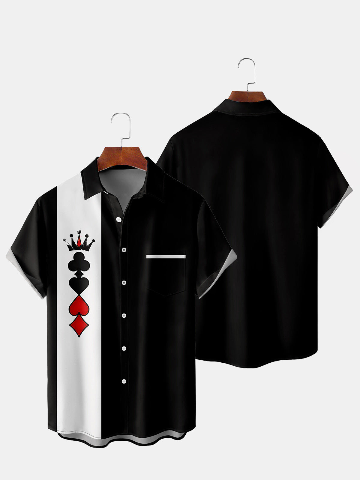 Men's Playing Card Print Vintage Bowling Shirt