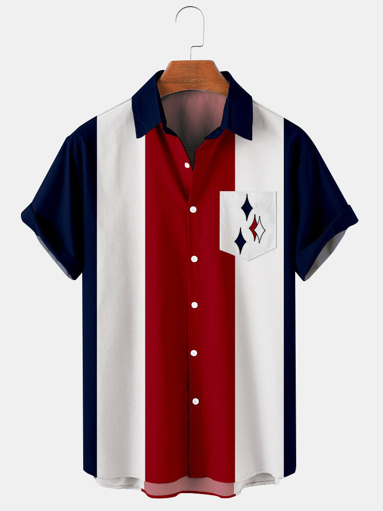 Men's Plus Size Retro Contrast Striped Geometric Pattern Shirt With Pockets