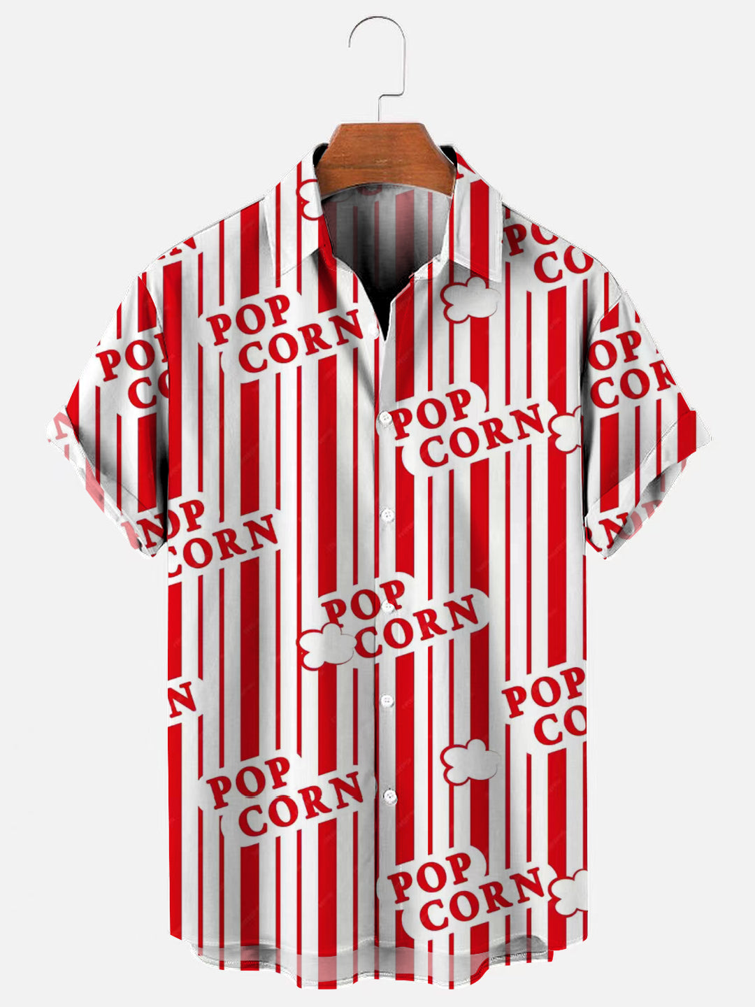 Men's Popcorn Box Graphic Print Hawaiian Short Sleeve Shirt