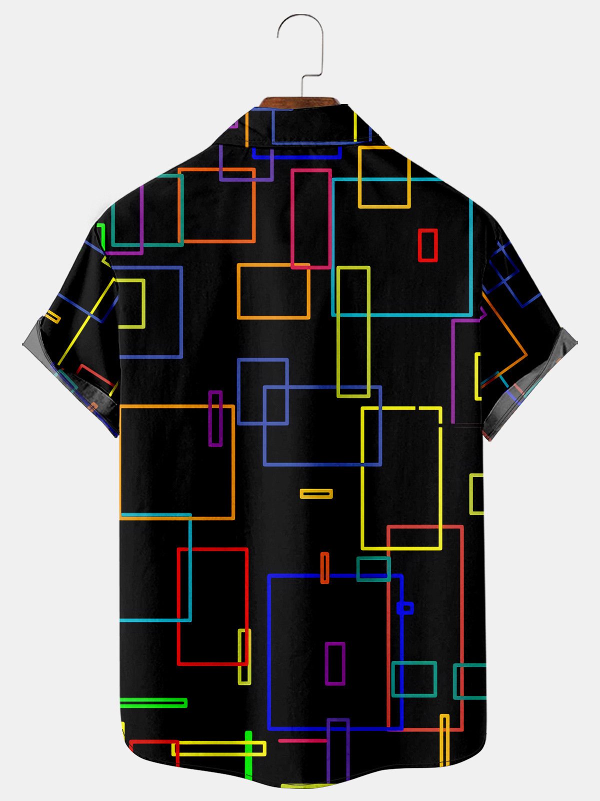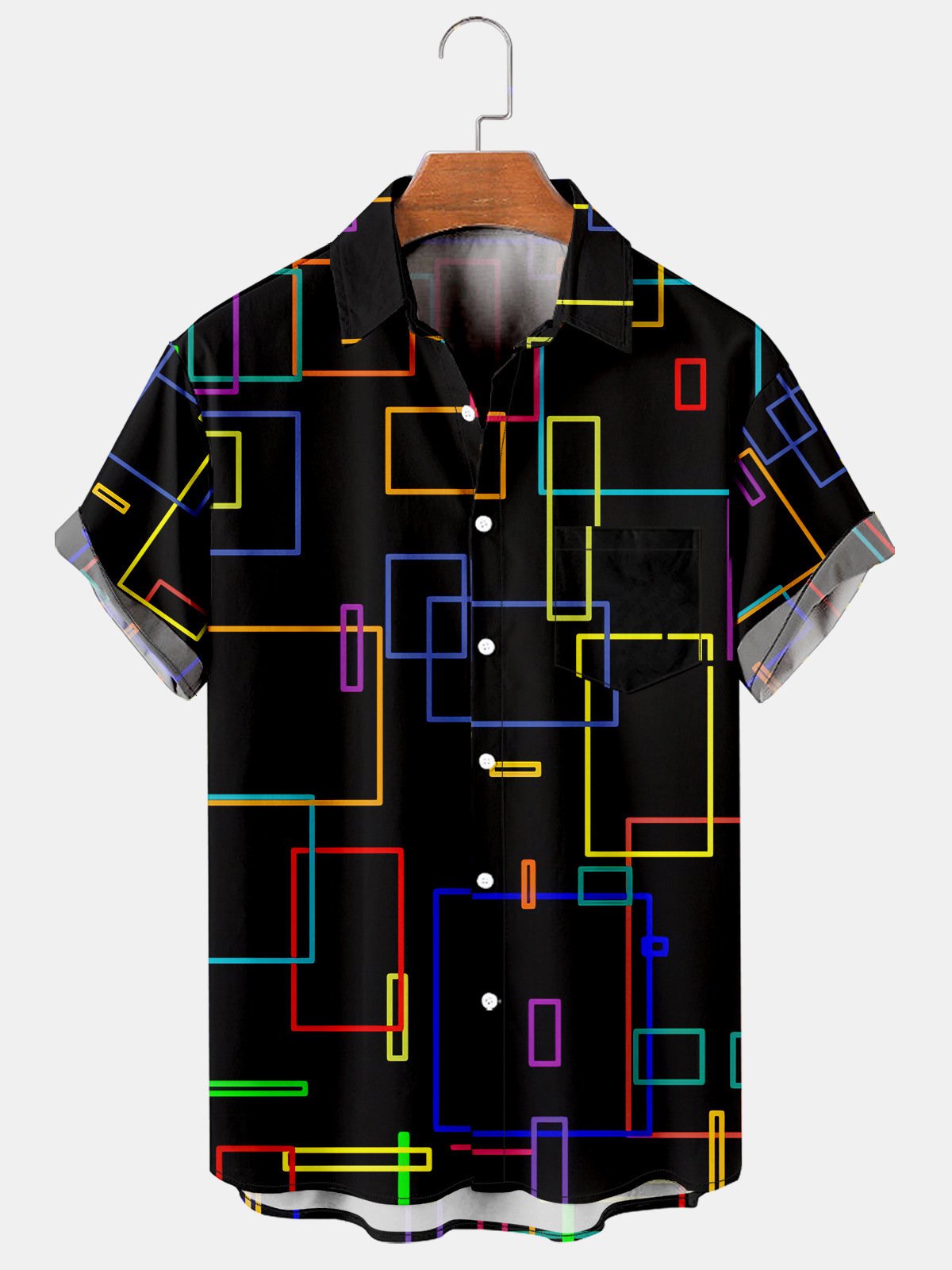 Men's Rainbow Line Print Casual Short Sleeve Hawaiian Shirt