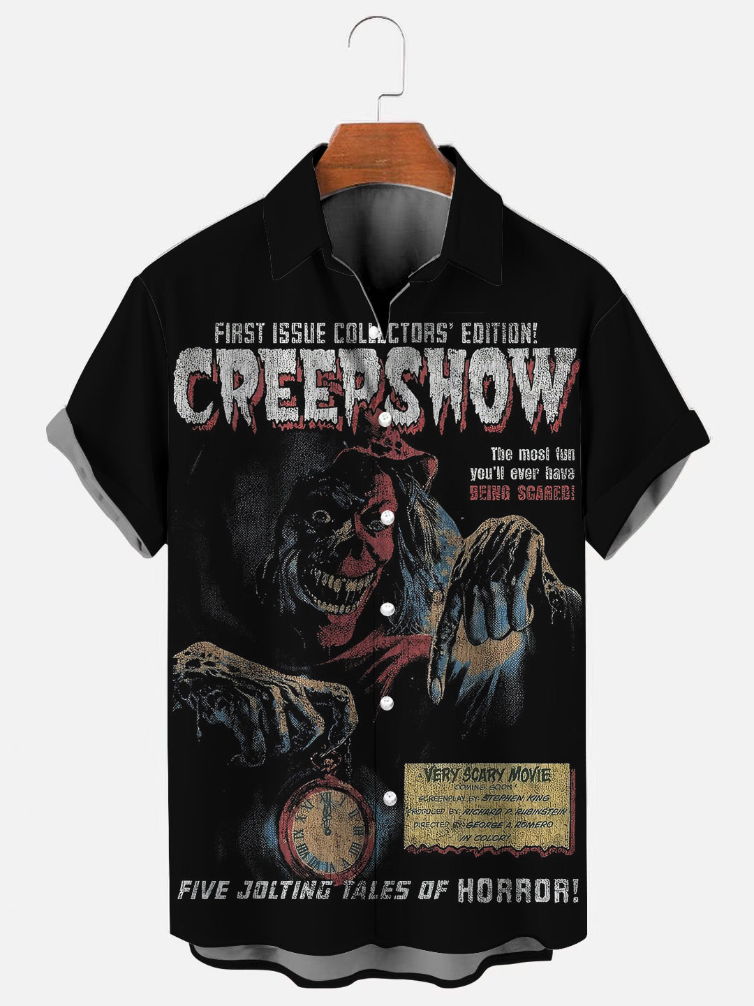 Men's Retro 80s Horror Movie Poster Print Hawaiian Short Sleeve Shirt