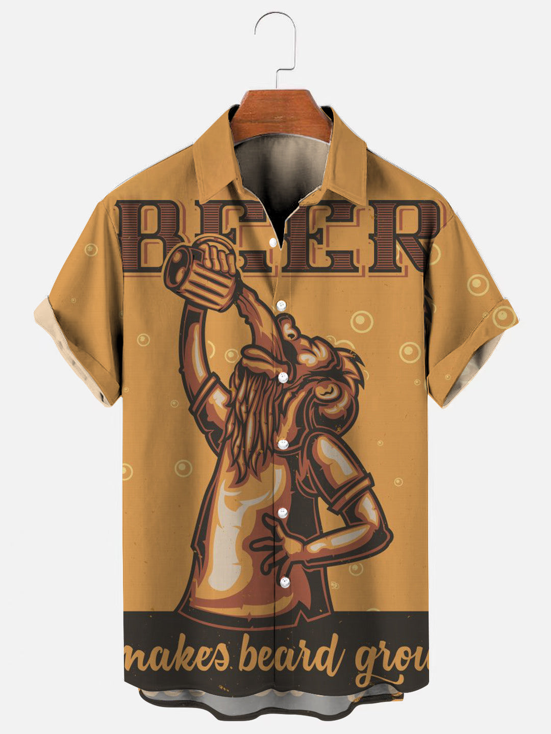 Men's Retro Beer Drinker Graphic Print Hawaiian Short Sleeve Shirt