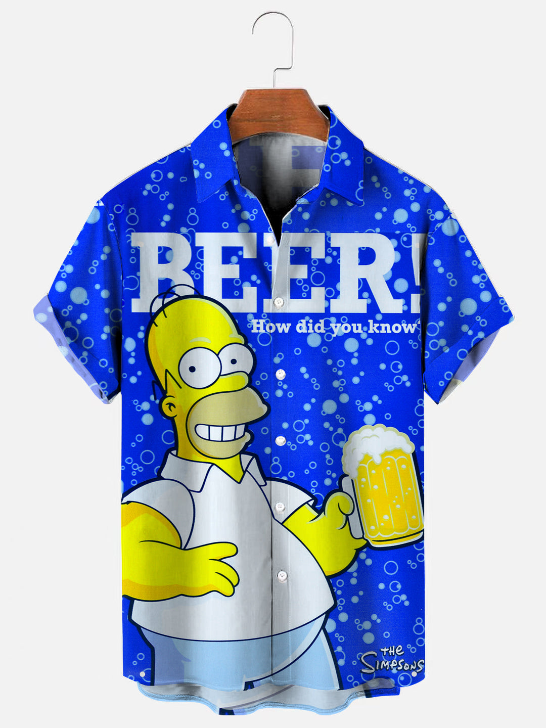 Men's Retro Cartoon Character Beer Print Hawaiian Short Sleeve Shirt