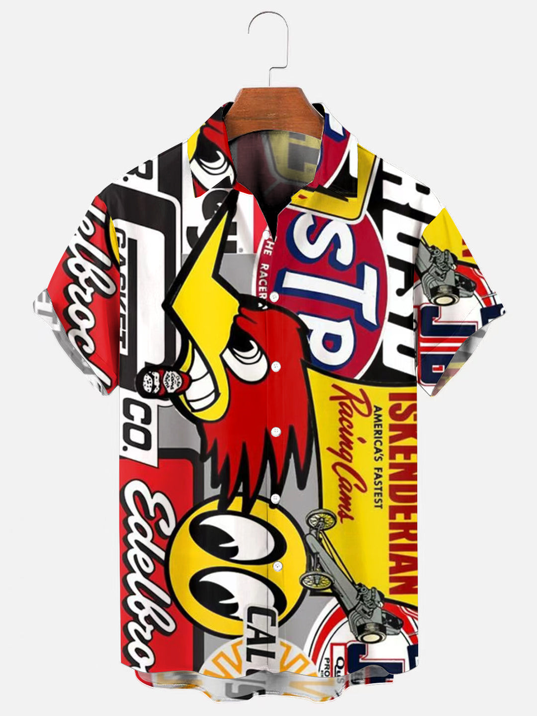 Men's Retro Racing Pattern Print Hawaiian Short Sleeve Shirt