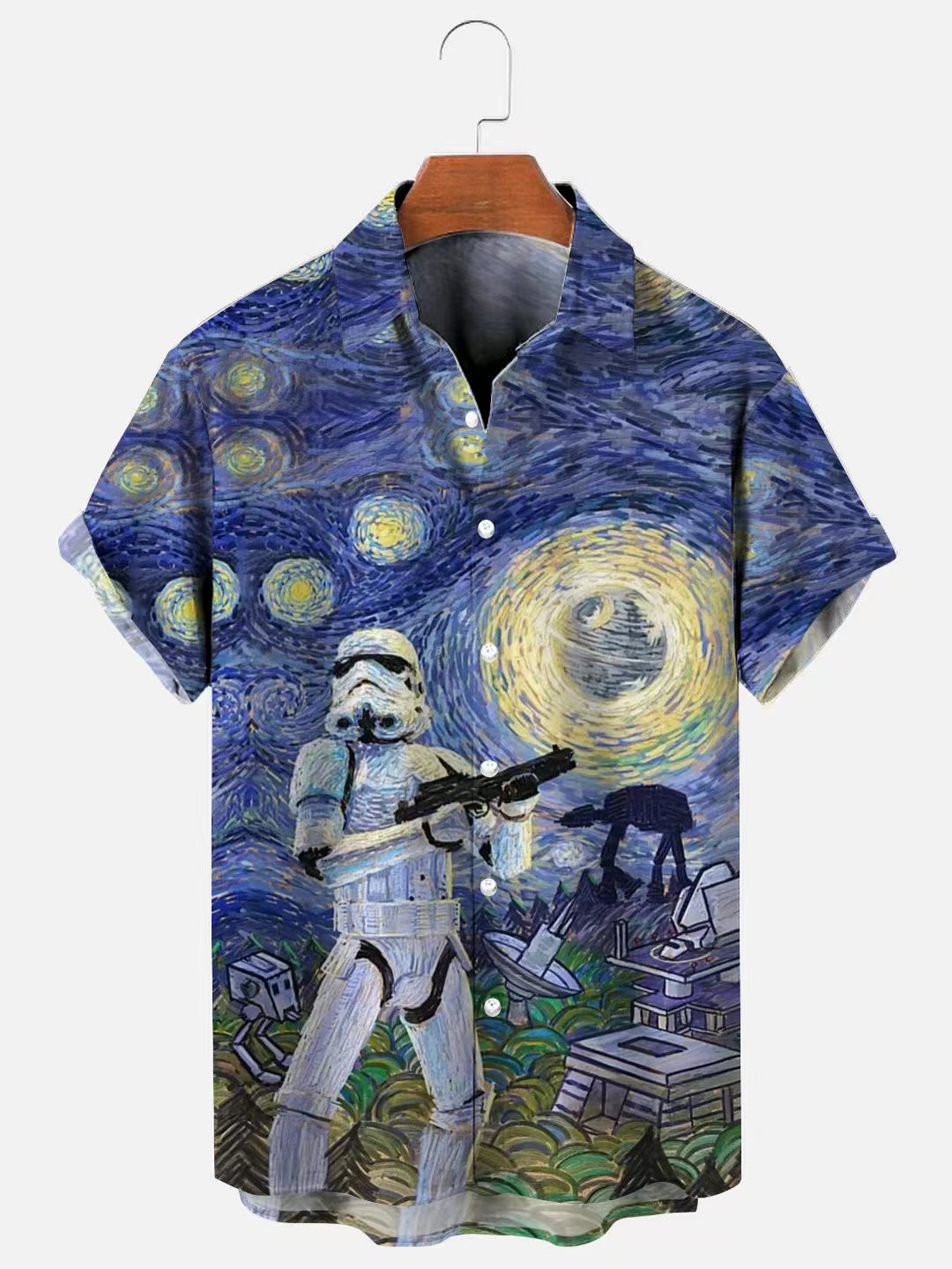 Men's Retro Charge Starry Night Pattern Print Hawaiian Short Sleeve Shirt