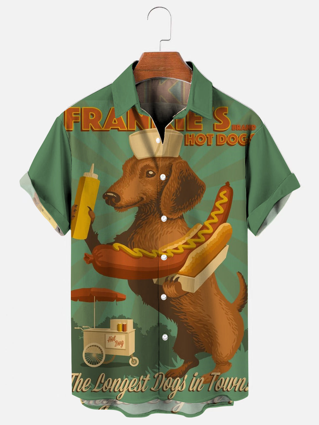 Men's Retro Dachshund Hot Dog Poster Print Hawaiian Short Sleeve Shirt