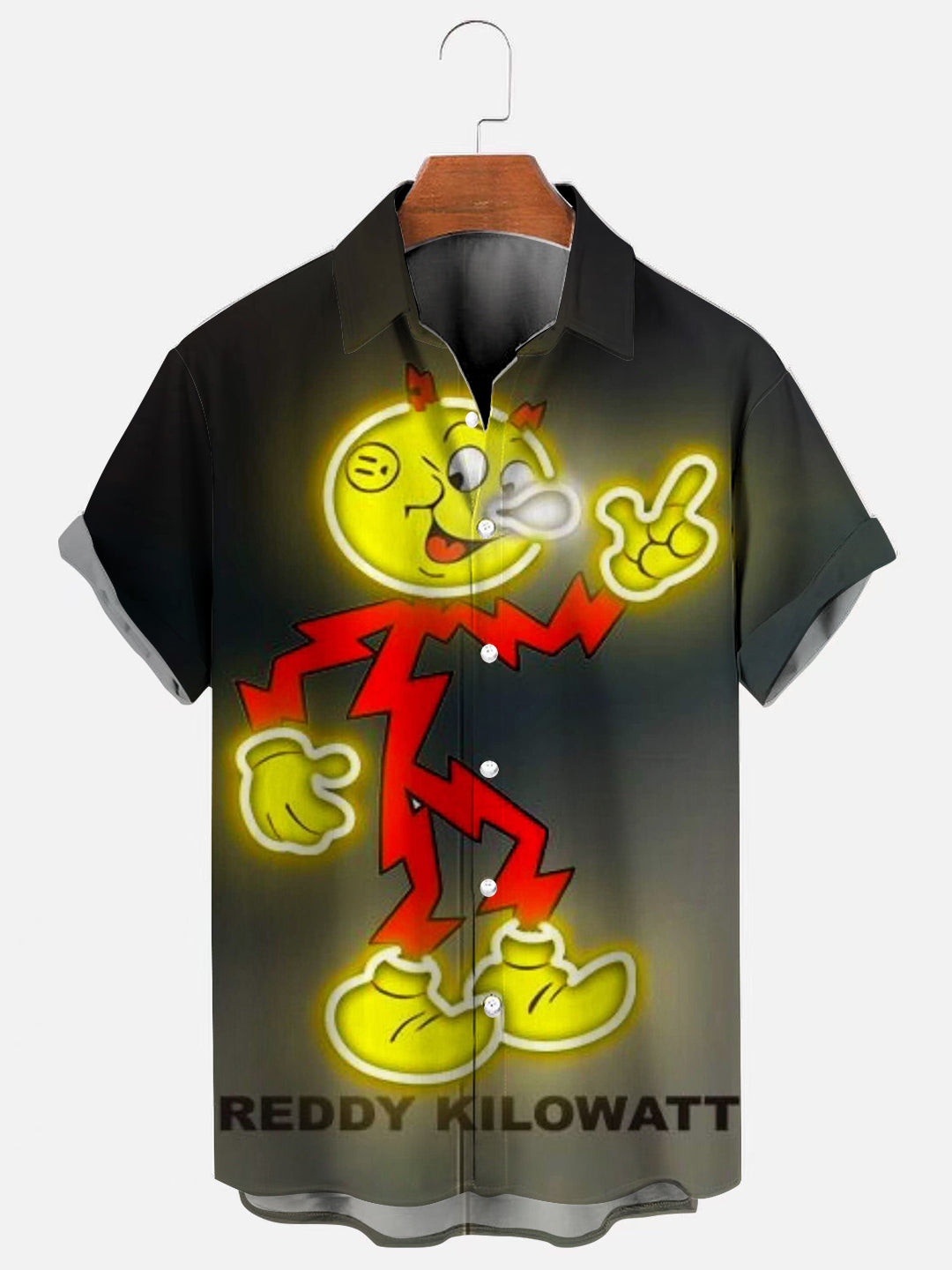 Men's Retro High Voltage Warning Symbol Print Hawaiian Short Sleeve Shirt