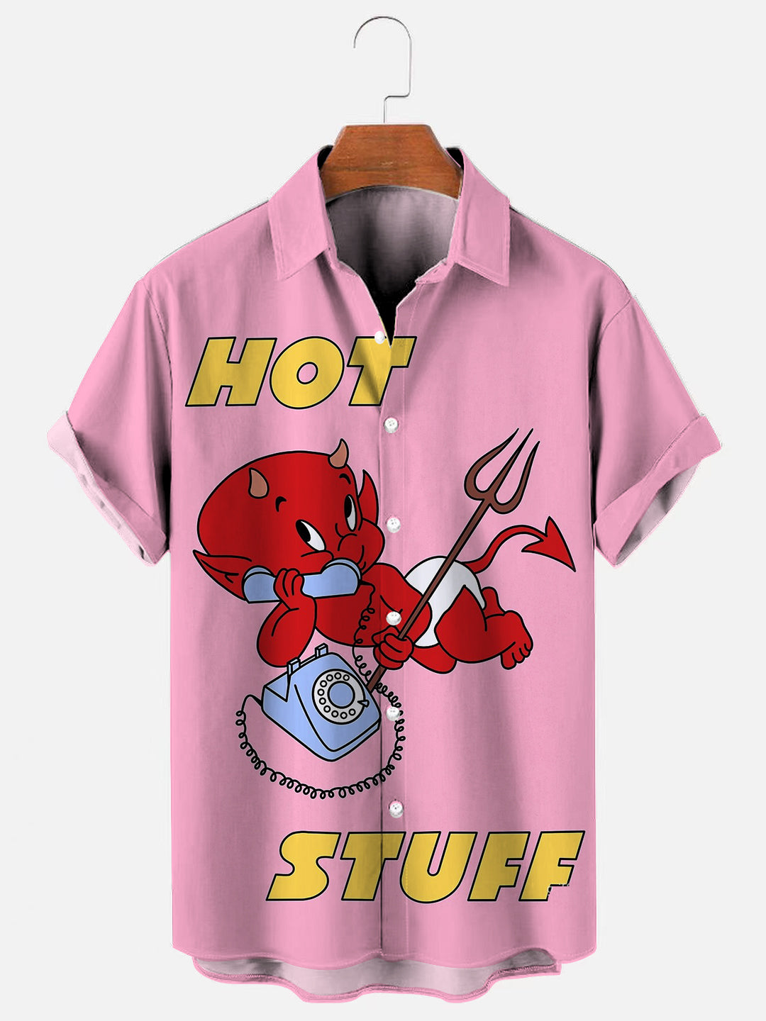 Men's Retro Little Devil Cartoon Print Casual Short Sleeve Shirt