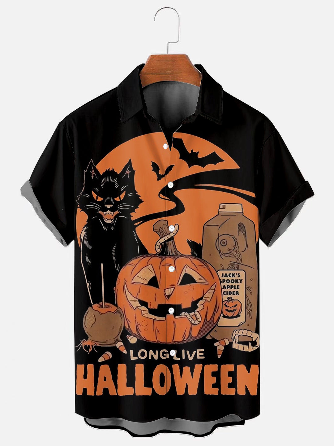 Men's Retro Long Live Halloween Printed Casual Short Sleeve Shirt