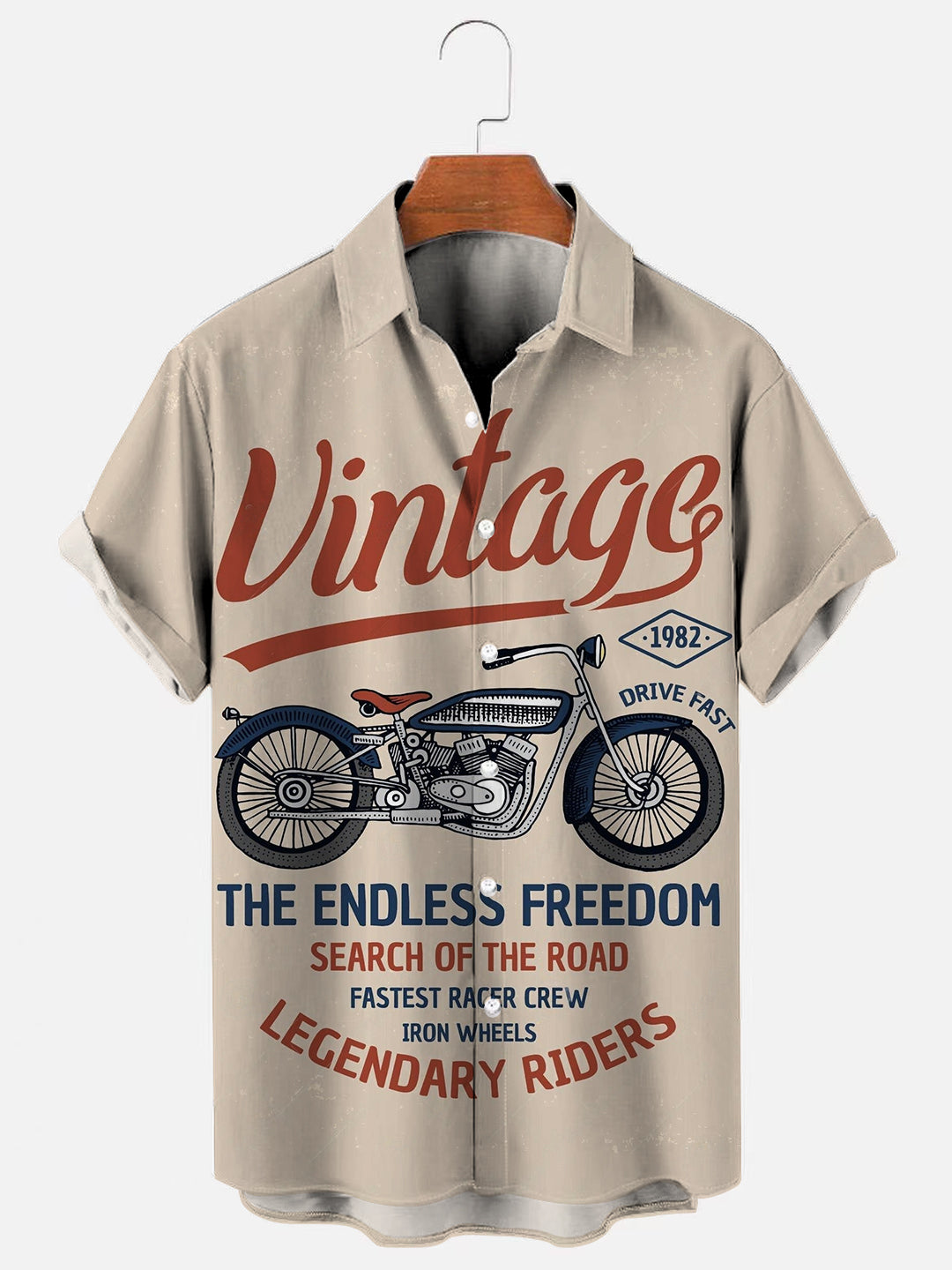 Men's Retro Motorcycle Print Hawaiian Short Sleeve Shirt