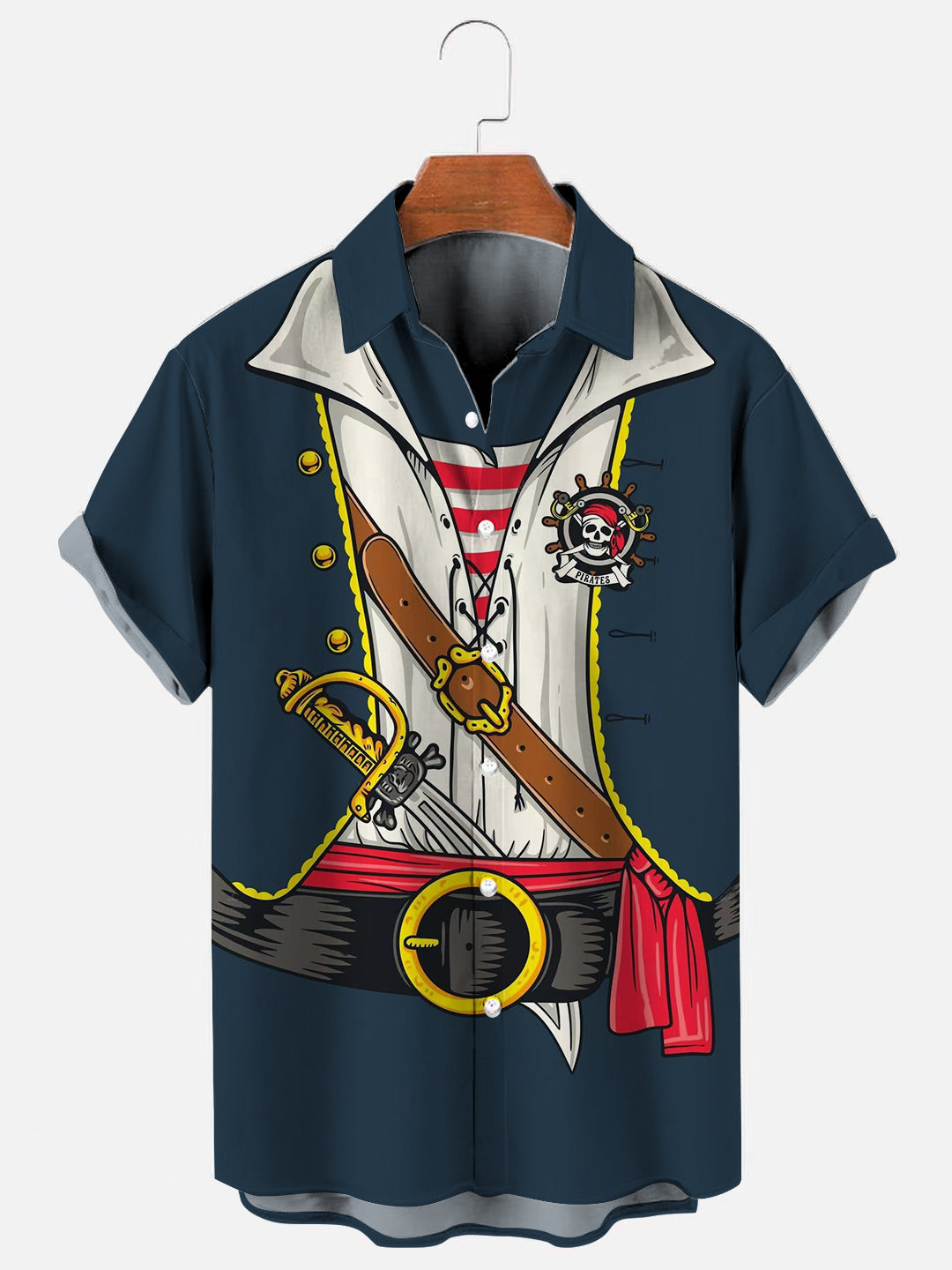 Men's Retro Pirate Clothing Graphic Print Hawaiian Short Sleeve Shirt