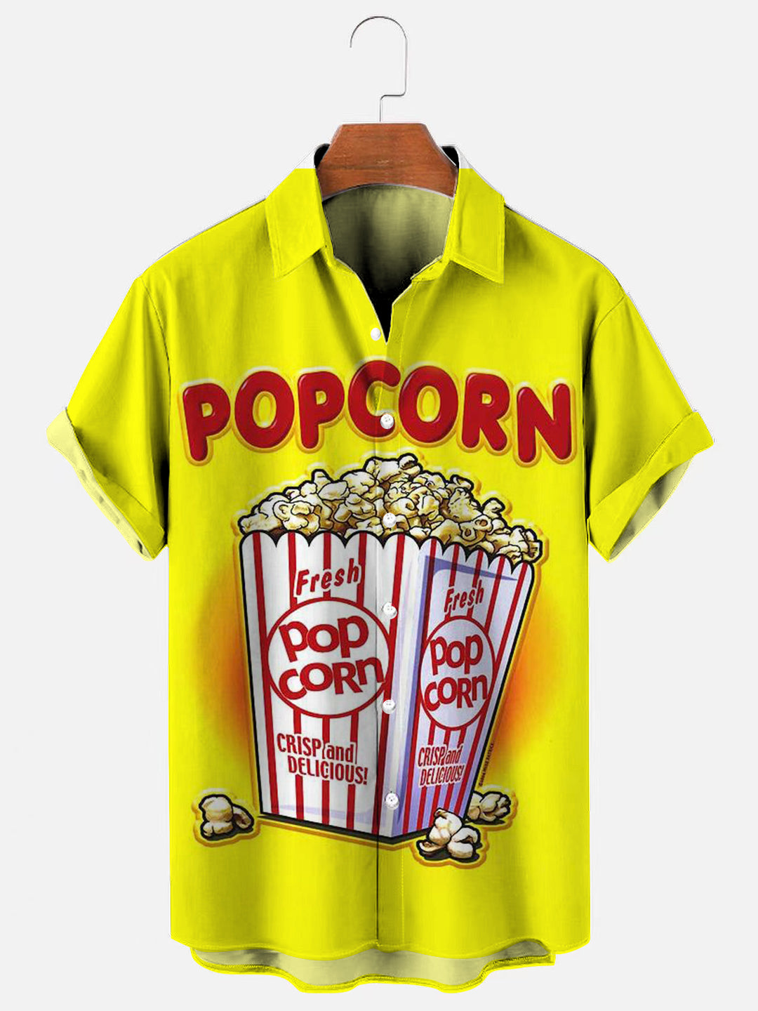 Men's Retro Popcorn Poster Print Hawaiian Short Sleeve Shirt