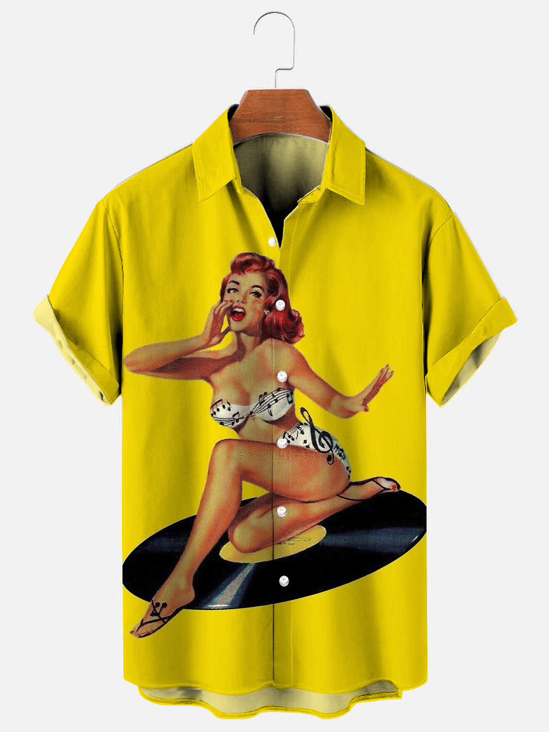 Men's Retro Rock Goddess Poster Print Hawaiian Short Sleeve Shirt