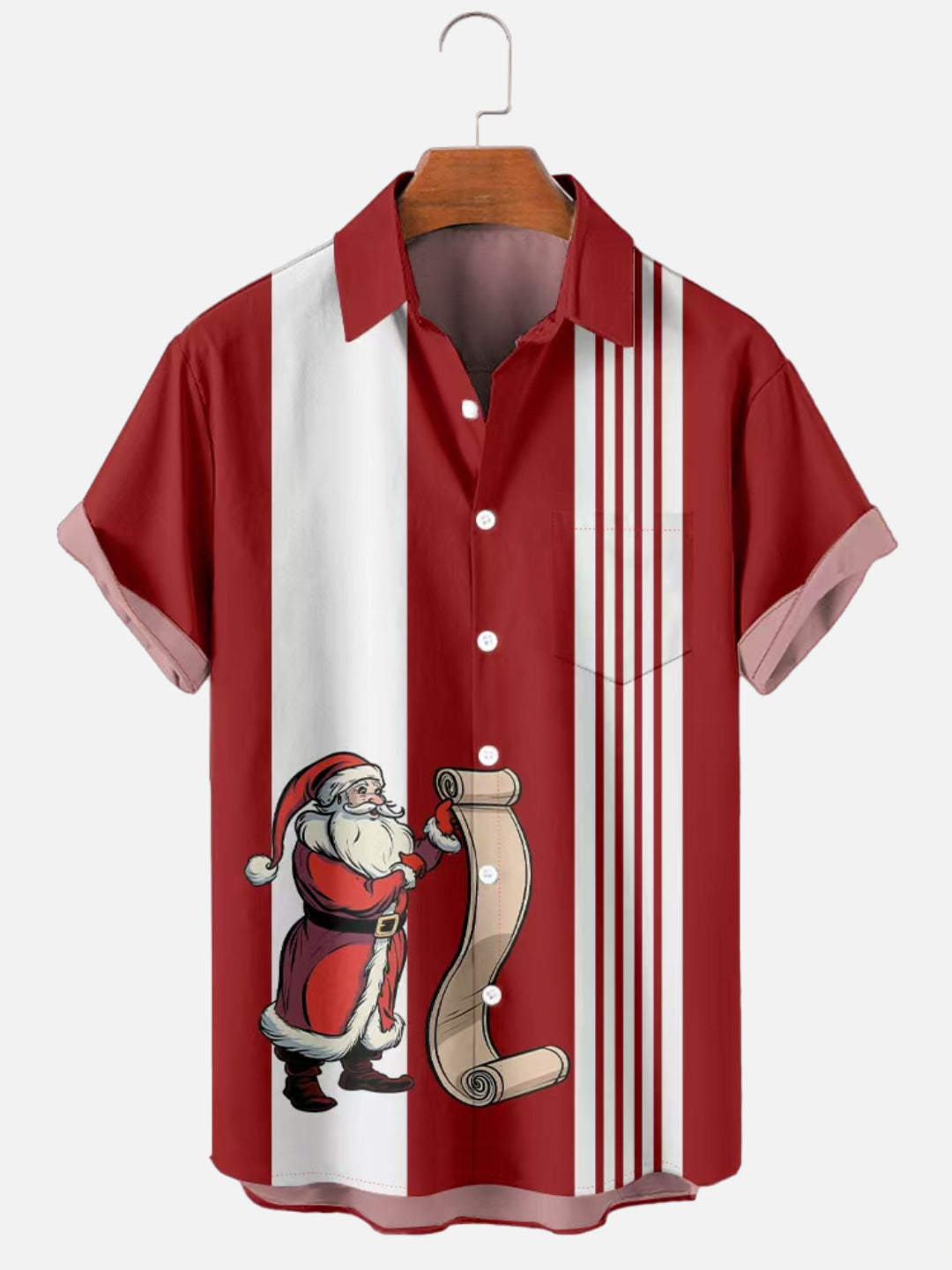Men's Retro Santa Claus Holding Gift List Graphic Print Bowling Short Sleeve Shirt