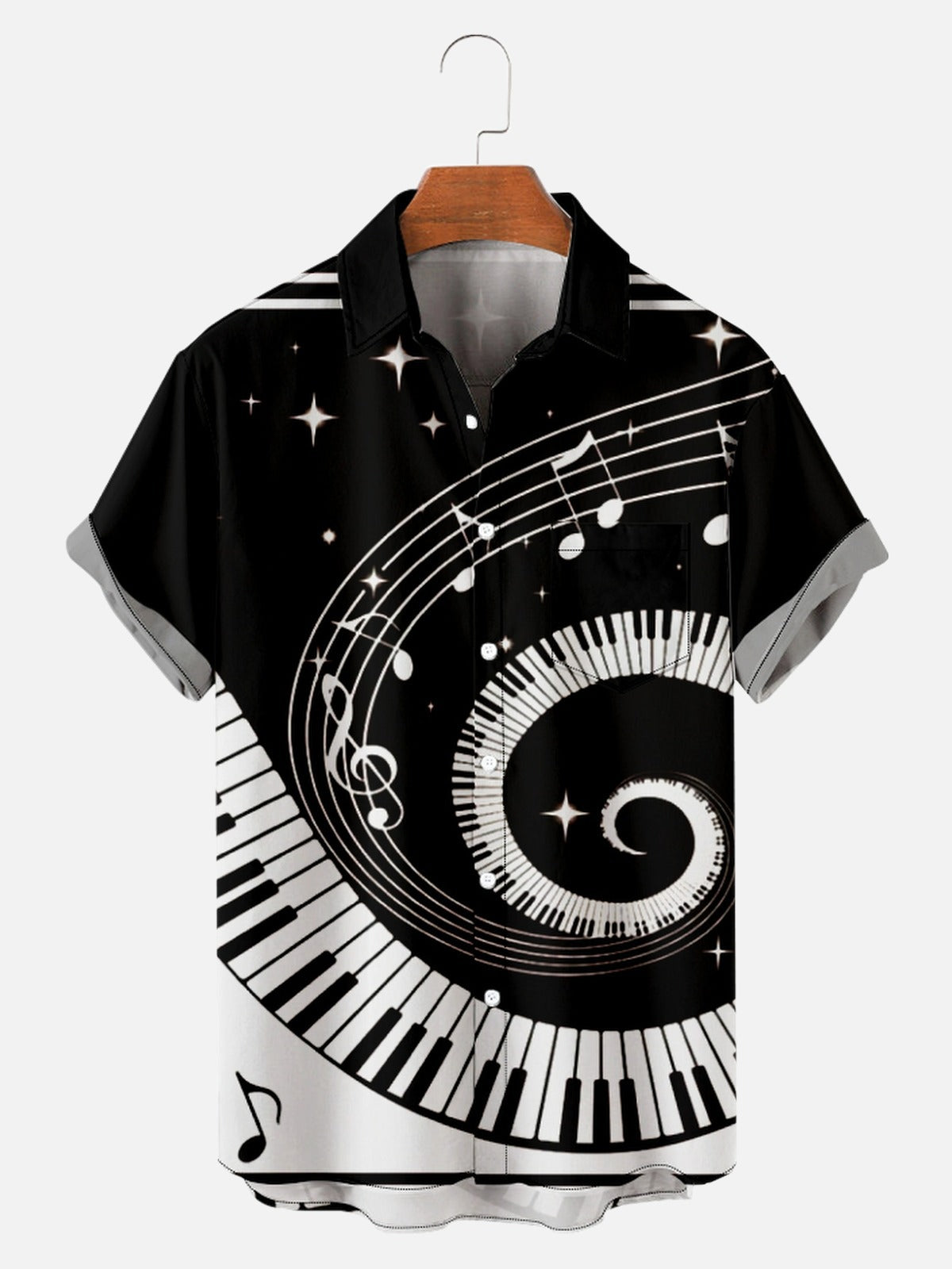 Mens Music Print Casual Breathable Short Sleeve Shirt