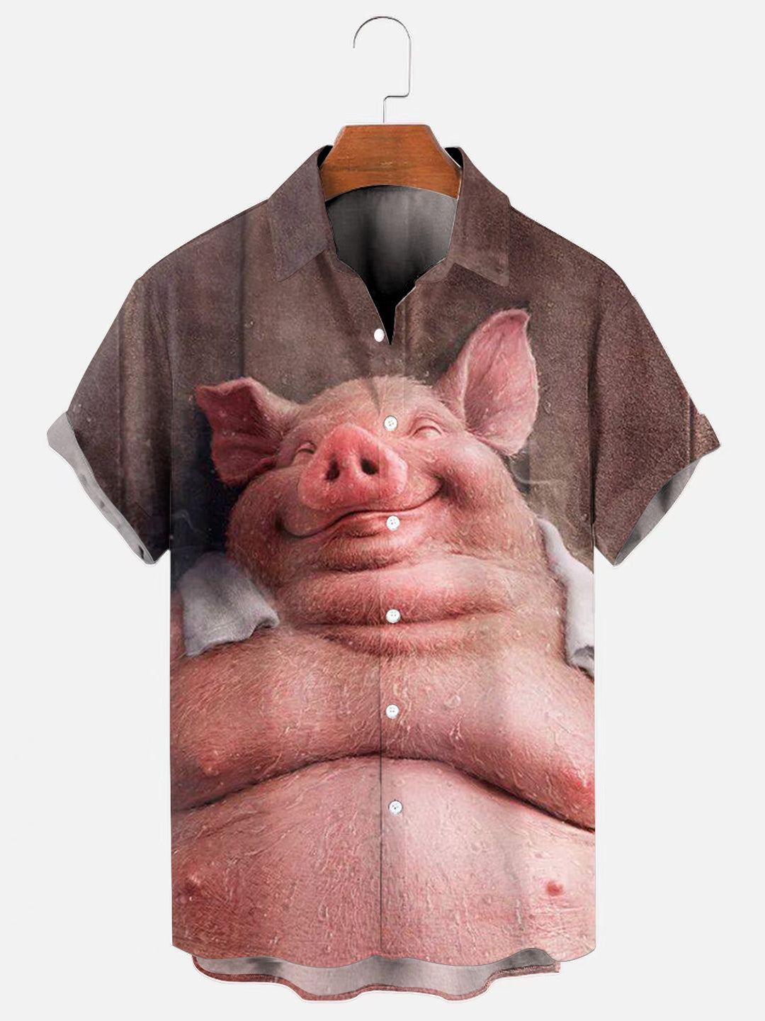 Men's Sauna Pig 3D Printed Casual Short Sleeve Shirt