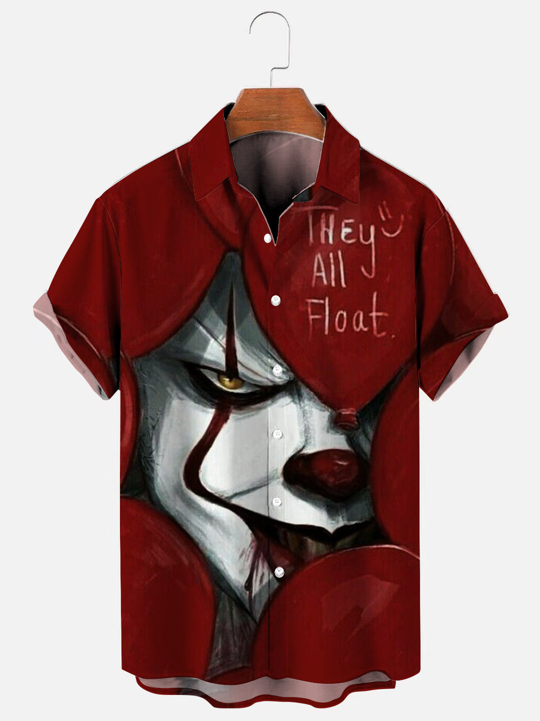 Men's Scary Clown Print Hawaiian Short Sleeve Shirt