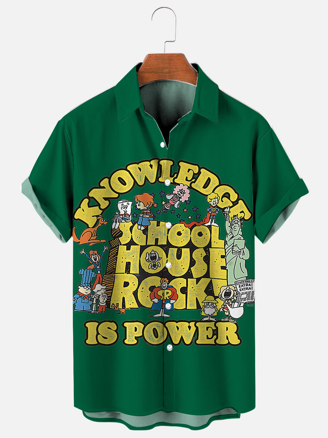 Men's Schoolhouse Rock Knowledge Is Power Vintage Print Casual Short Sleeve Shirt