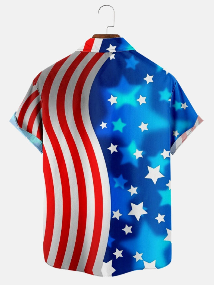 Men's Simple Casual American Flag Line Print Short Sleeve Shirt